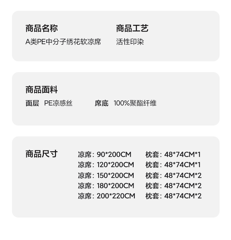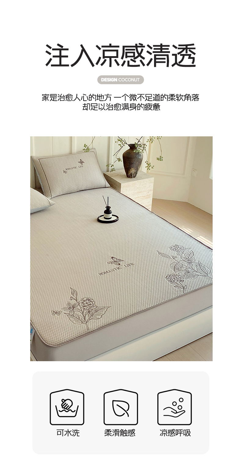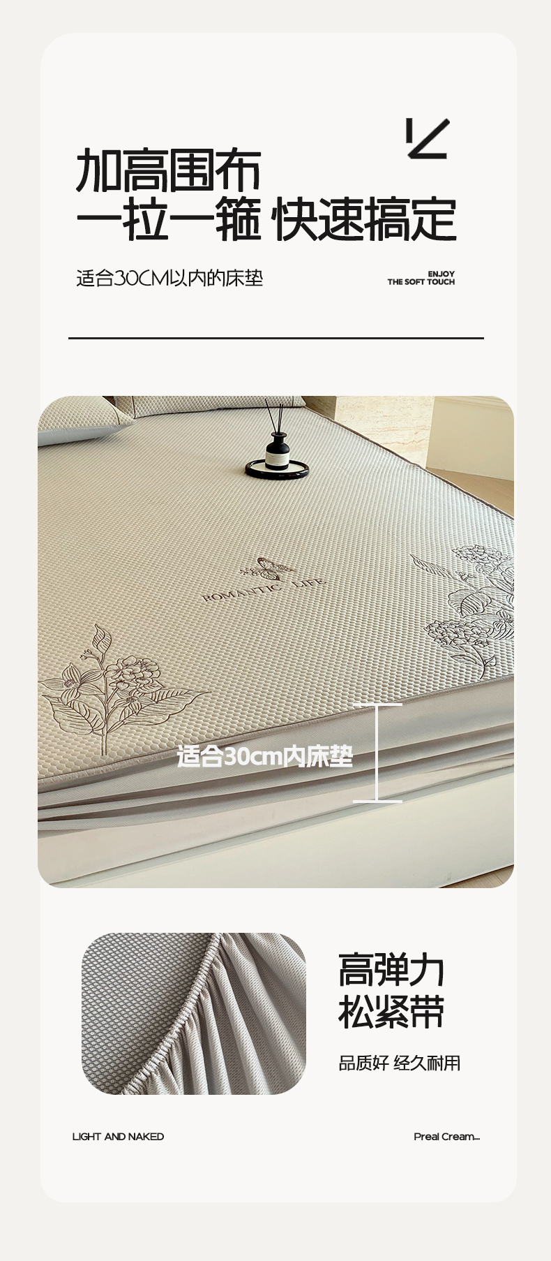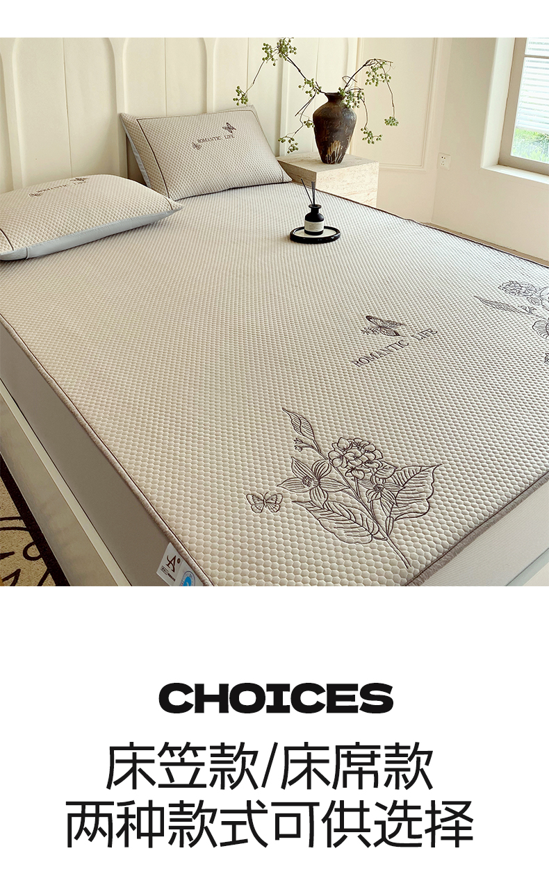 宜家坊 2025新款A类PE中分子绣花软凉席-墨蝶 床笠款-墨蝶金