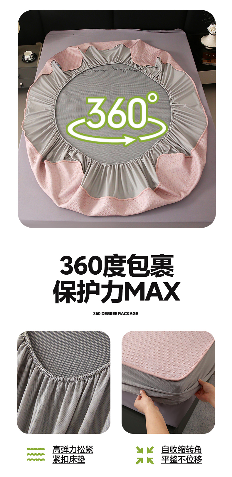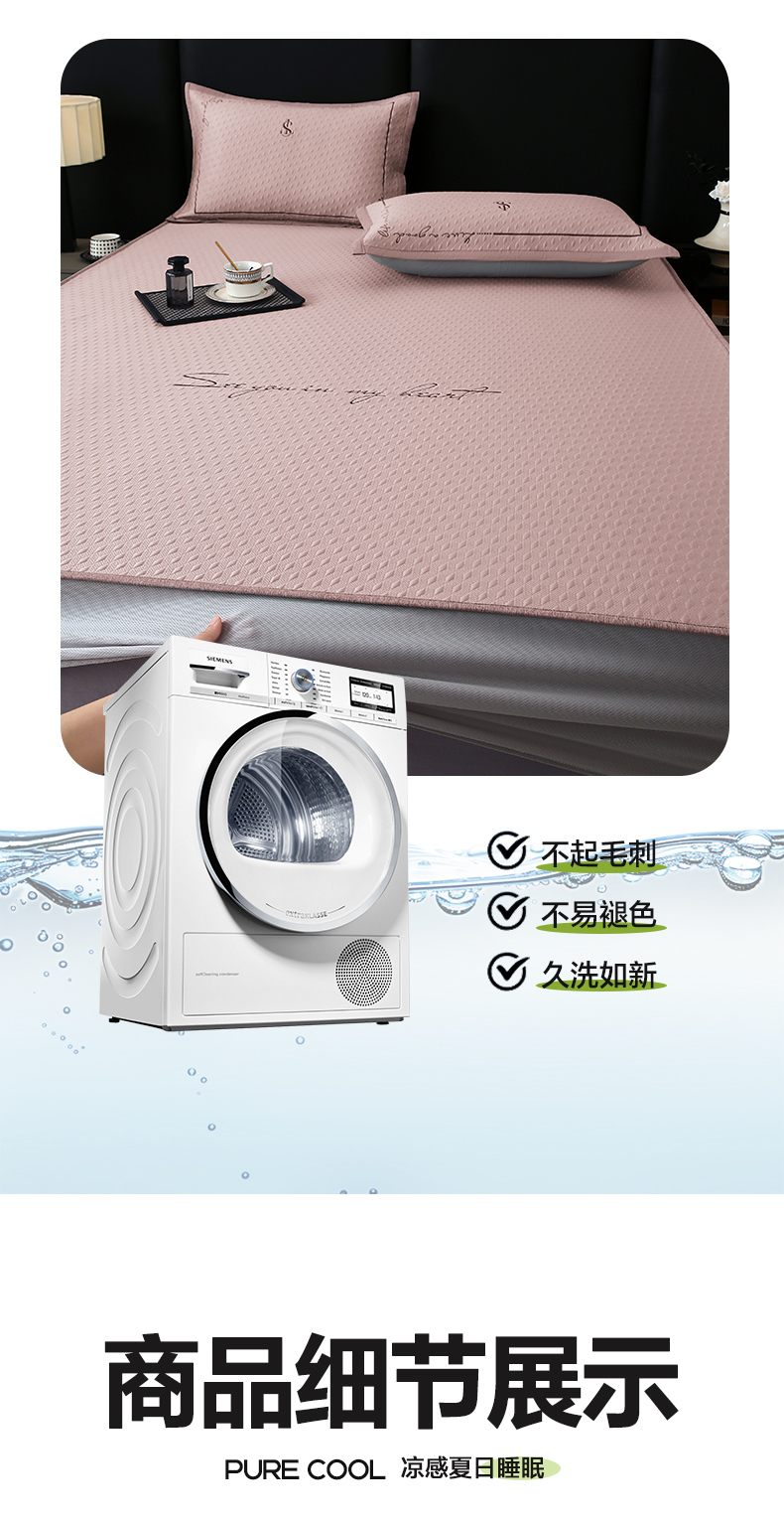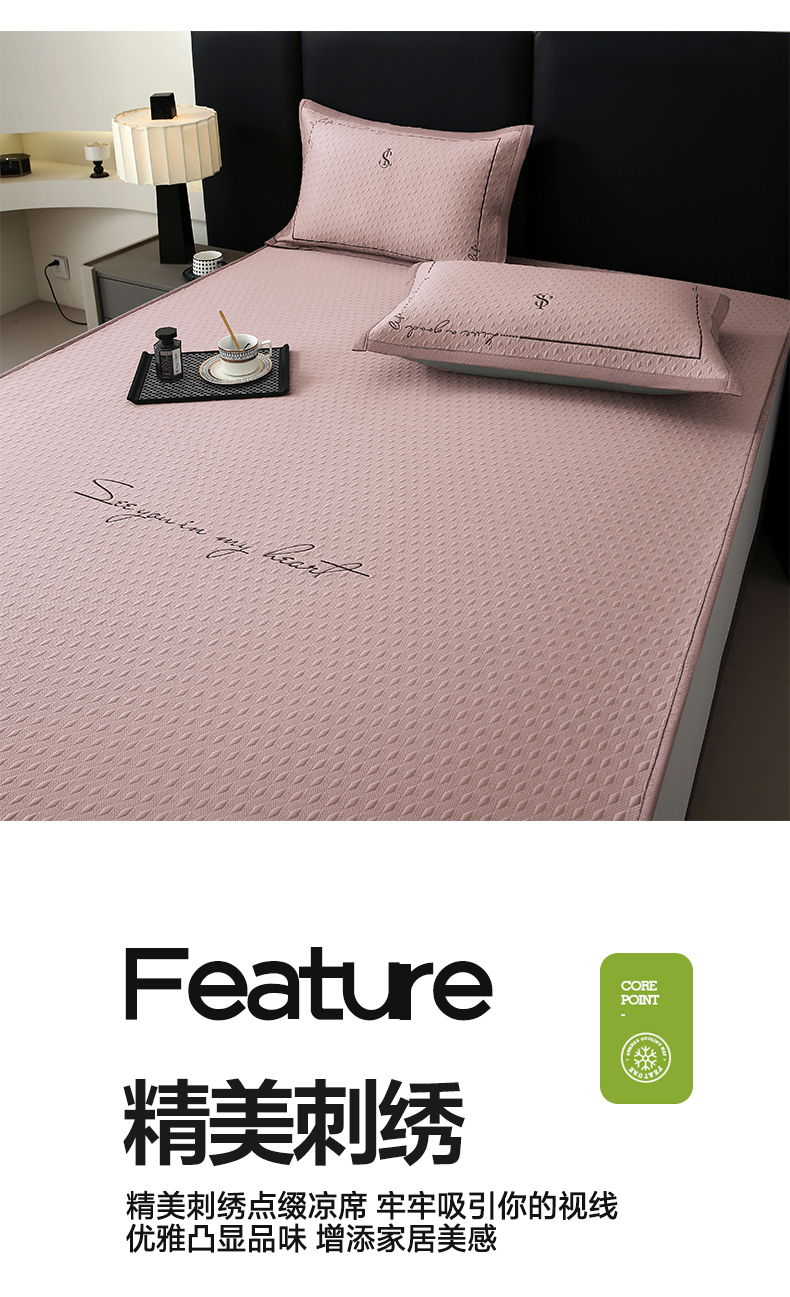商品名称:宜家坊 2025新款A类PE中分子绣花软凉席-雅致 床笠款-雅致粉