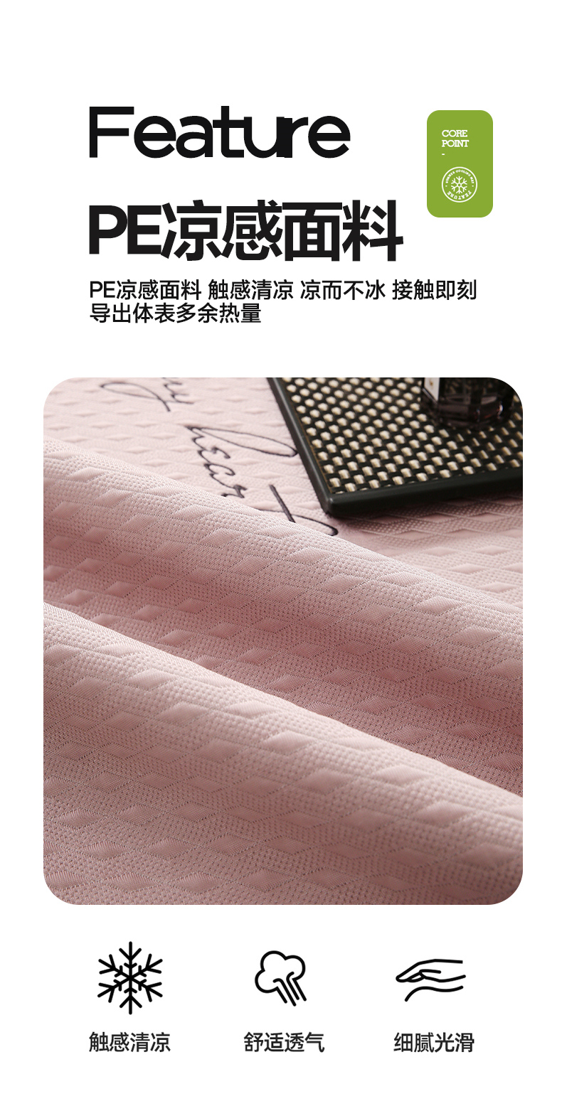 宜家坊 2025新款A类PE中分子绣花软凉席-雅致 床笠款-雅致粉