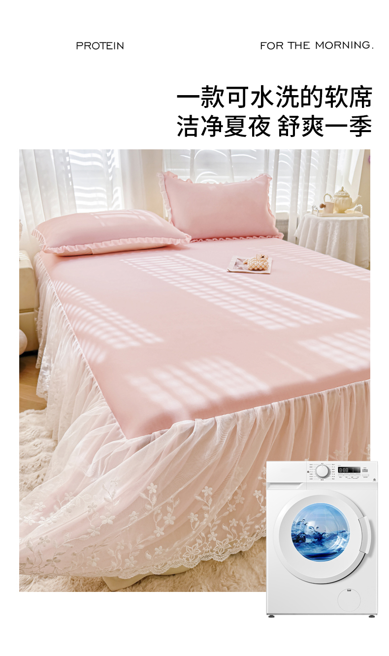 当前位置: 91家纺网 > 商品网购 > 床上用品 > 凉席 > LIFE.丽芙 2025春夏新款独家研发太空层凉感软席双层蕾丝边冰丝凉席床裙款 冰蓝