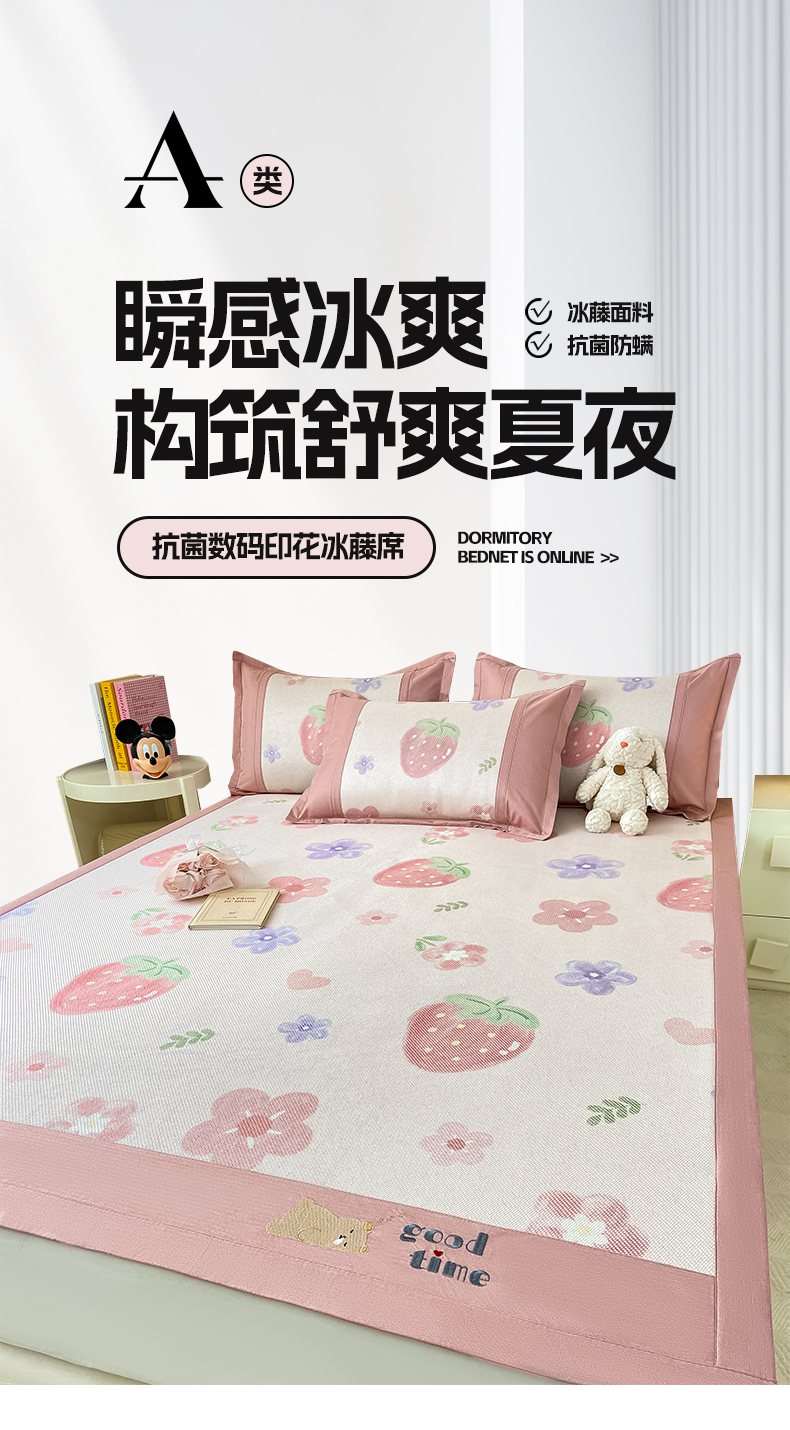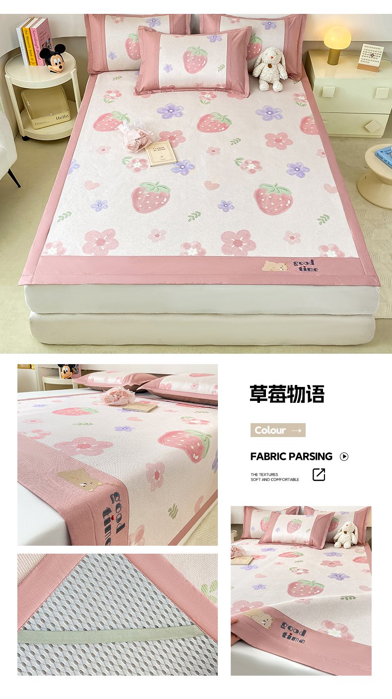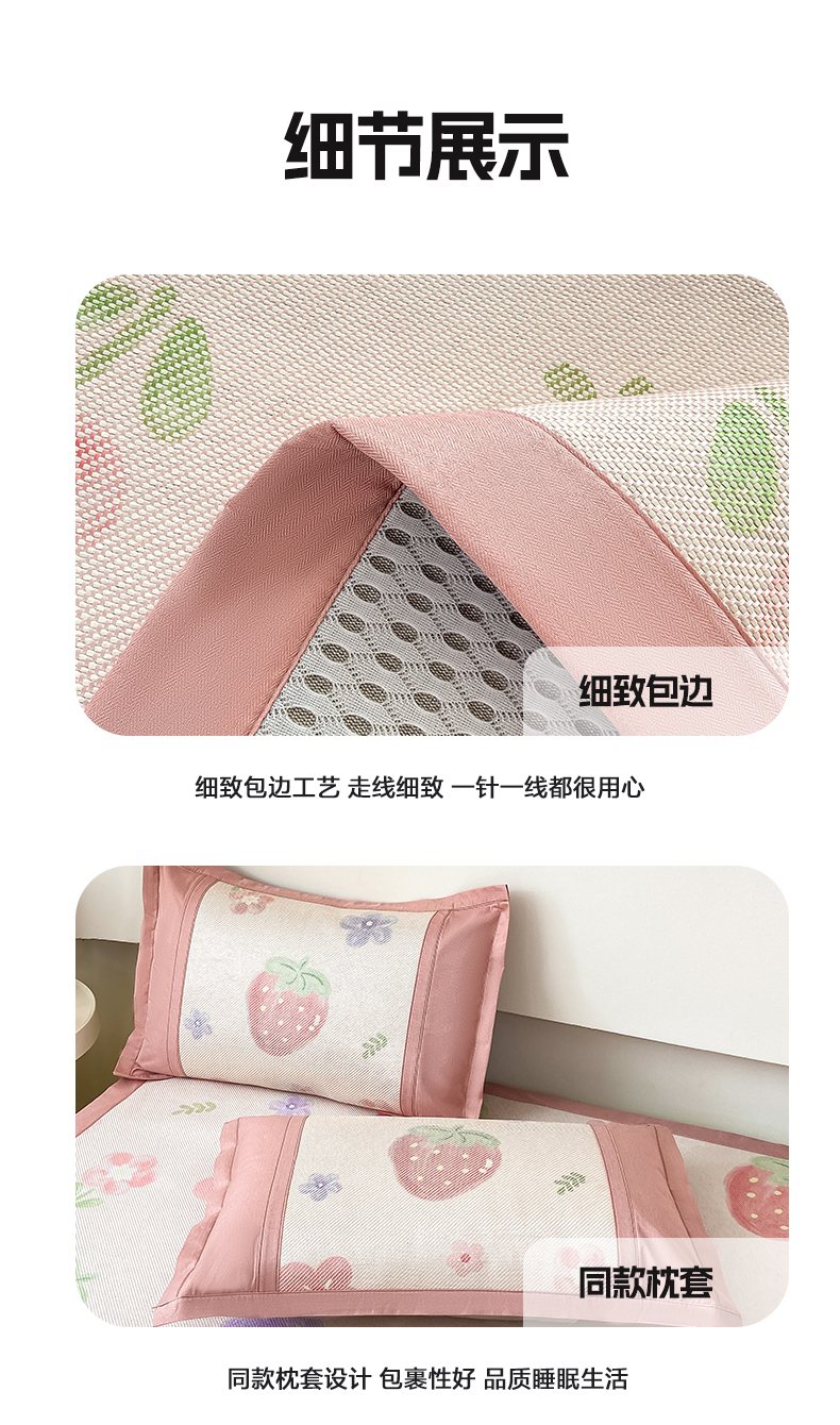 当前位置: 91家纺网 > 商品网购 > 床上用品 > 凉席 > 藤席 > 2025新款A类抗菌数码印花冰藤席 草莓物语