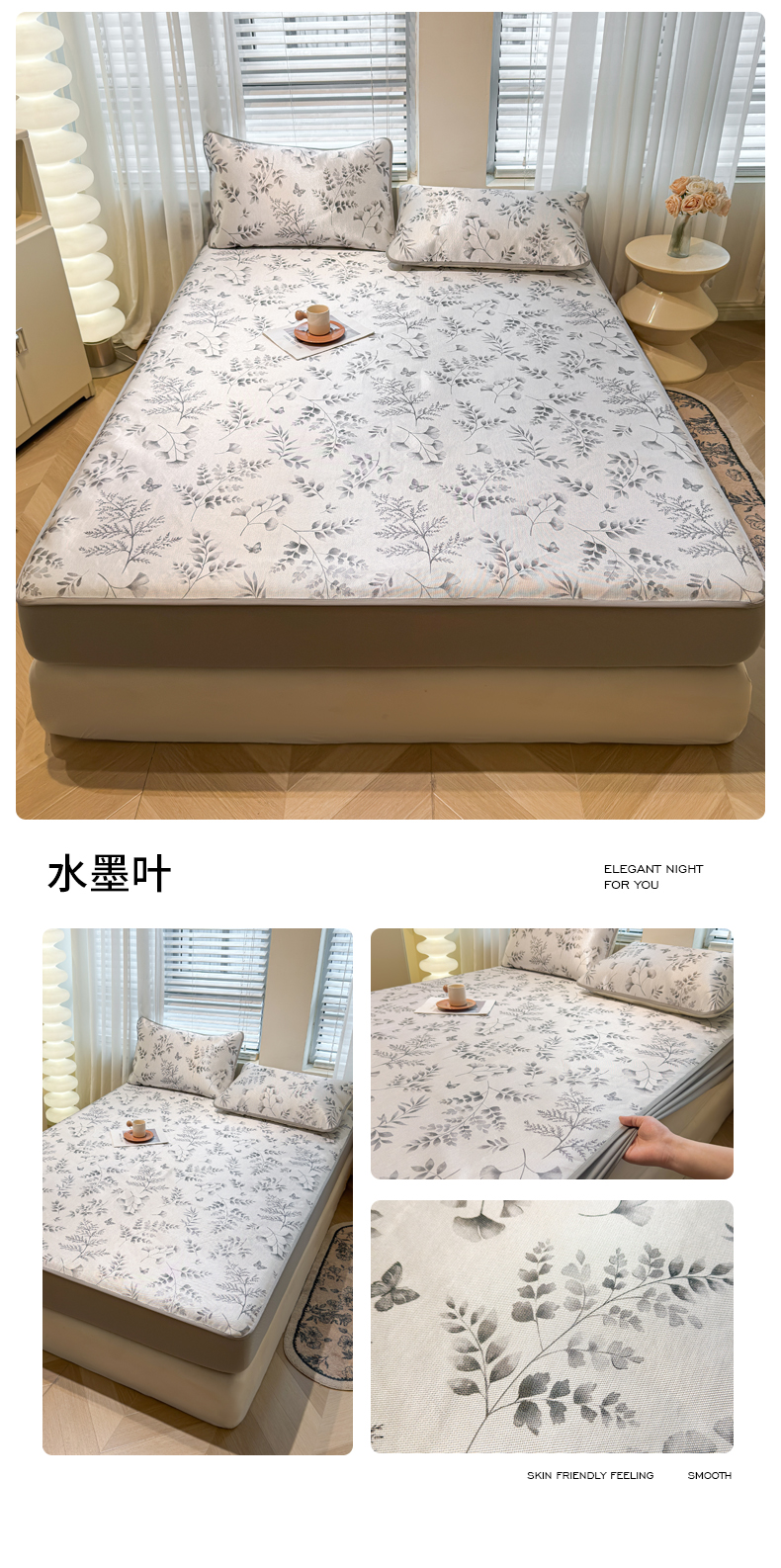 当前位置: 91家纺网 > 商品网购 > 床上用品 > 凉席 > 凉席套件 > LIFE.丽芙 2025春夏季新品数码印花冰藤凉席席子床笠三件套加厚冰丝软藤席小清新印花床罩单件(风格二) 水墨叶