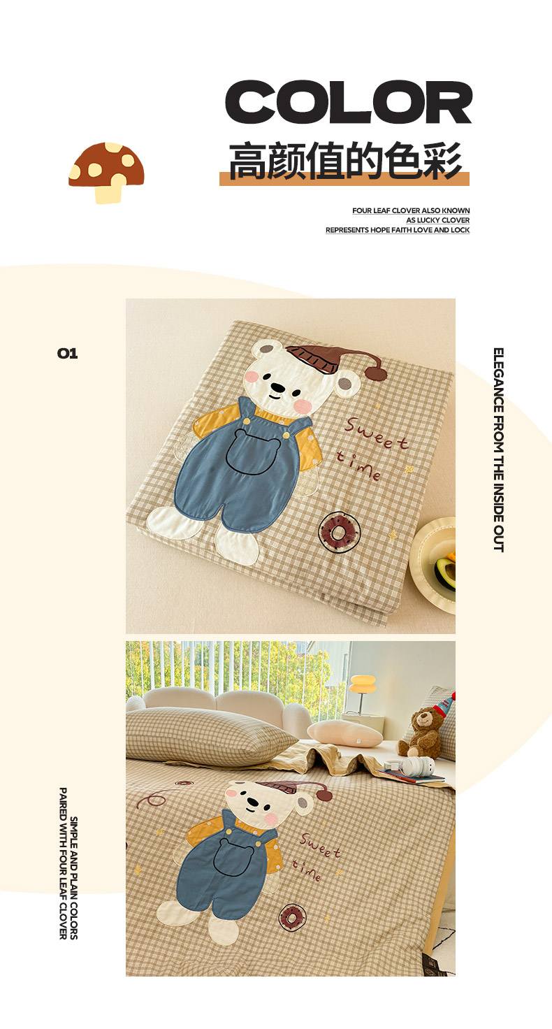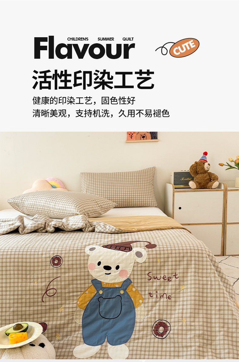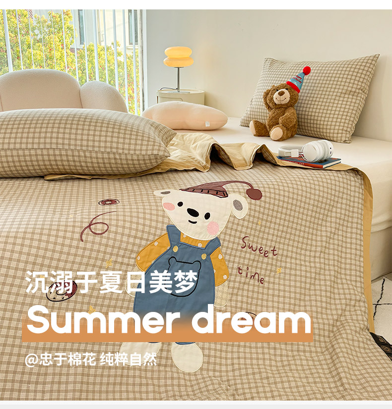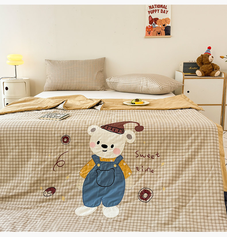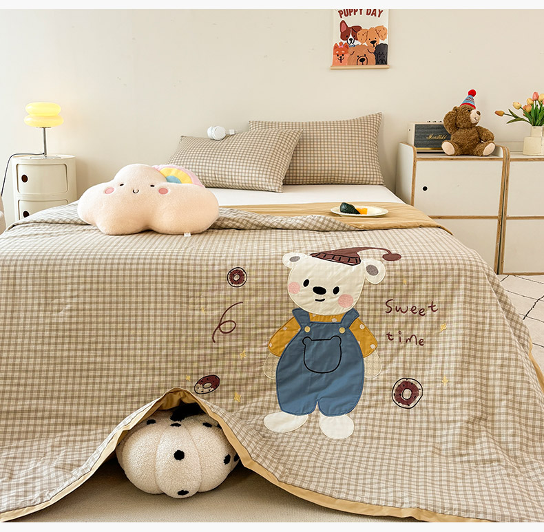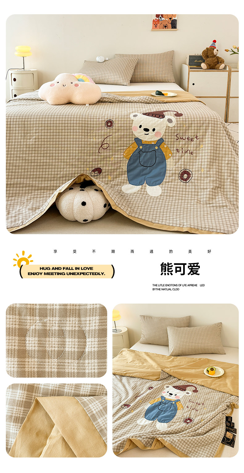鸣升家纺 2025新款精梳全棉纯棉绣花夏被夏凉被空调被 熊可爱