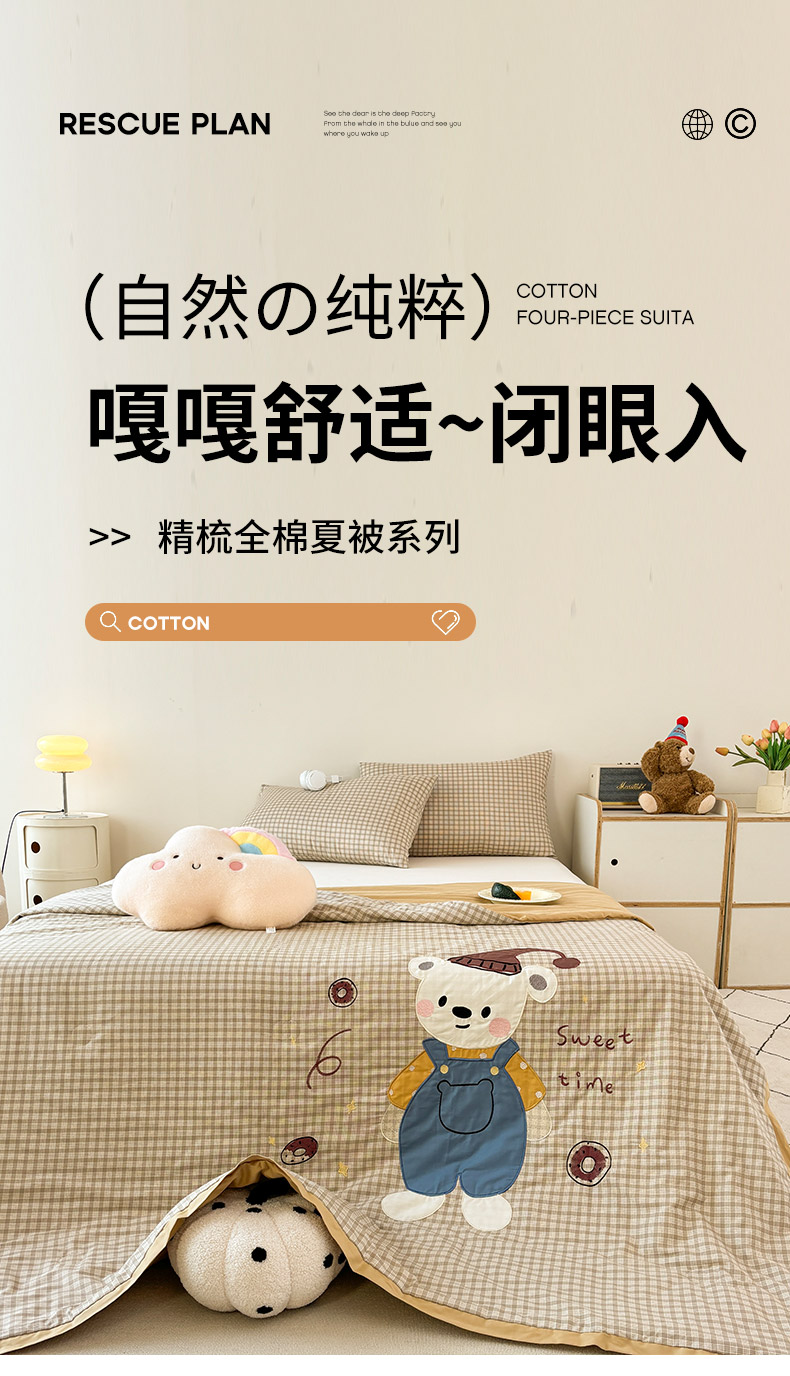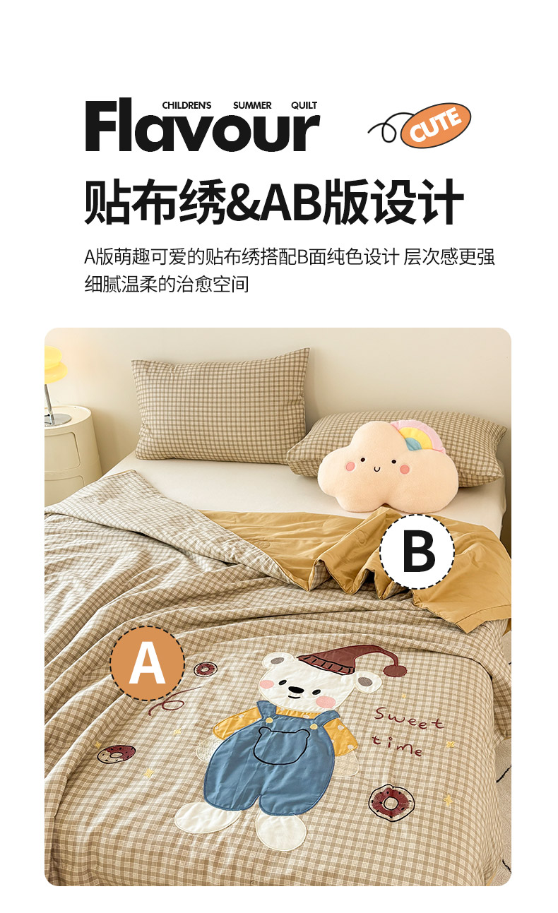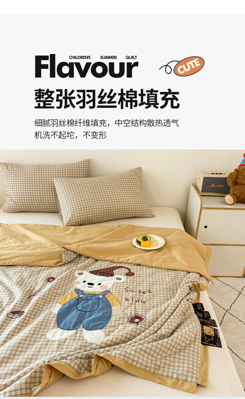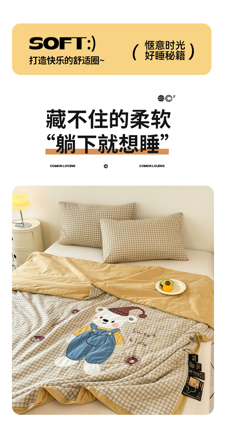 鸣升家纺 2025新款精梳全棉纯棉绣花夏被夏凉被空调被 熊可爱