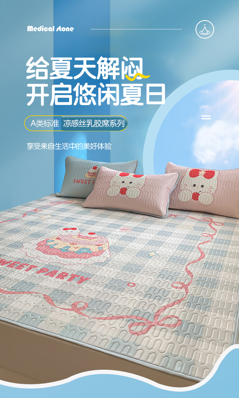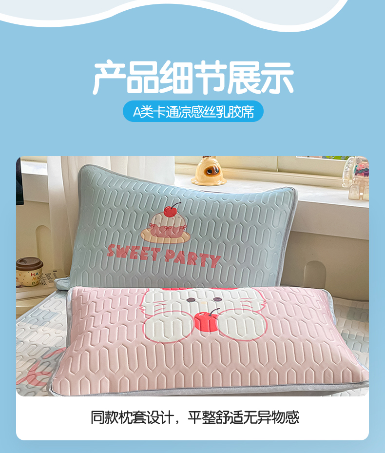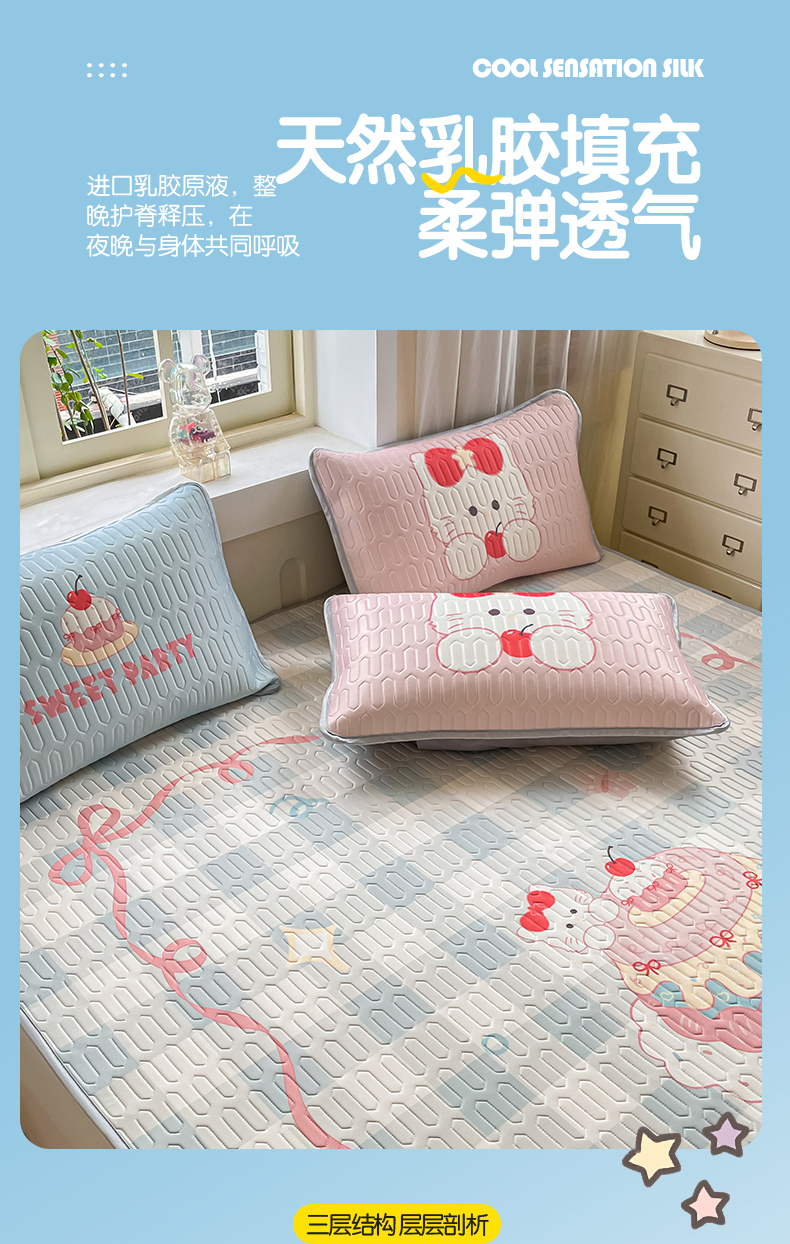 商品名称:布卢姆床垫 2025新款卡通A类大版数码凉感丝乳胶凉席 蛋糕小猫