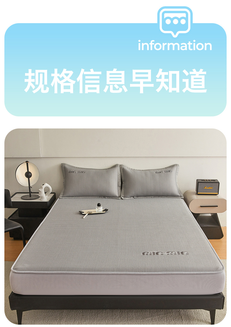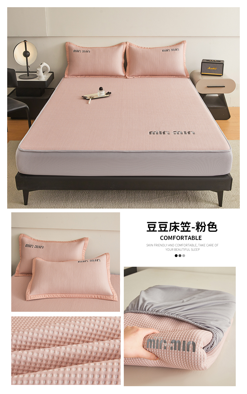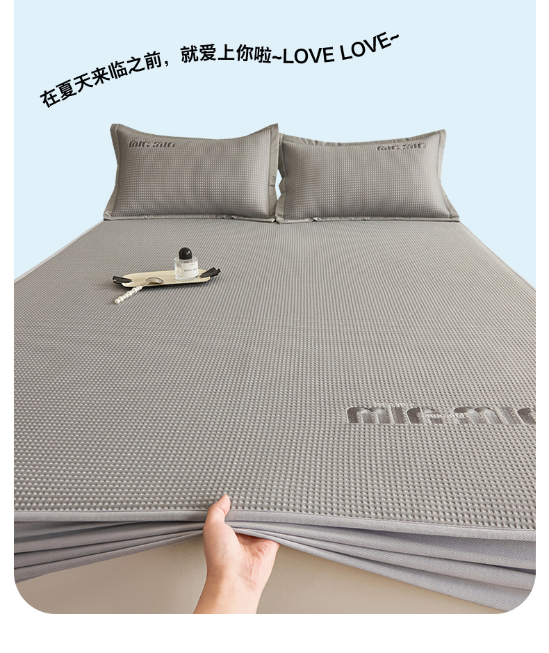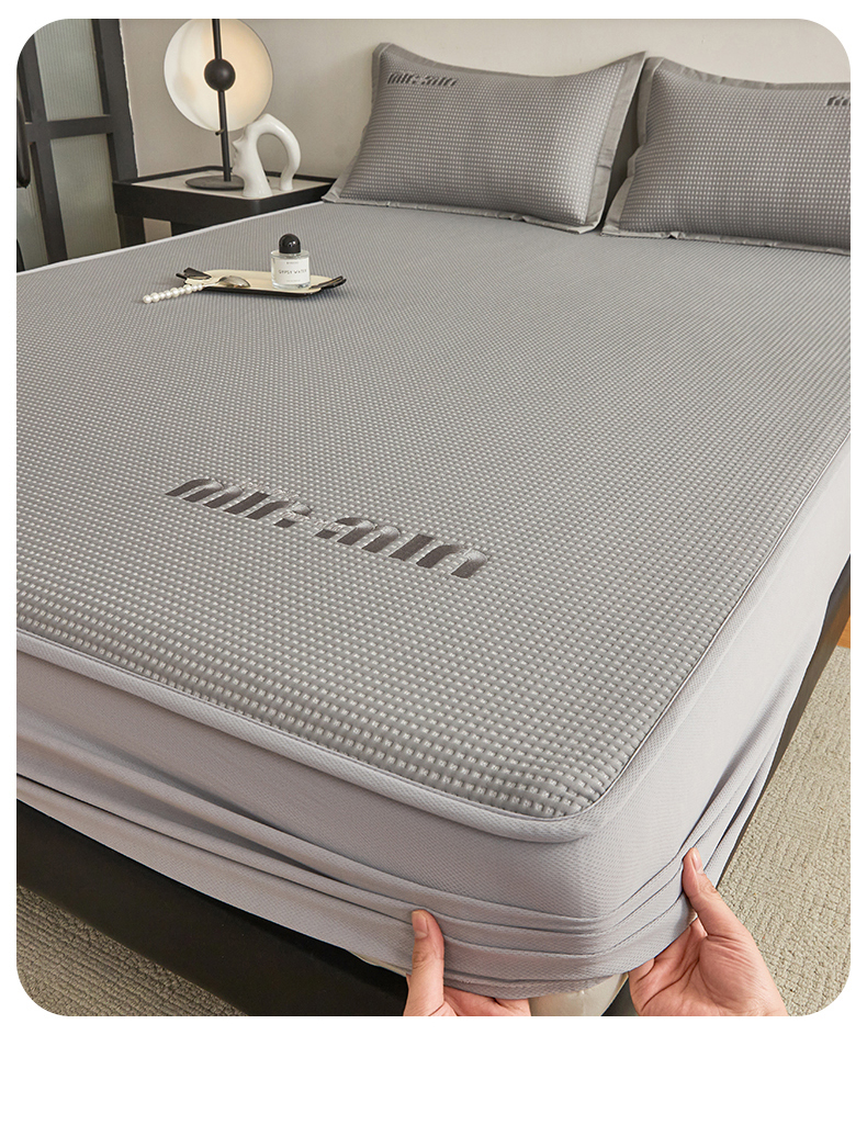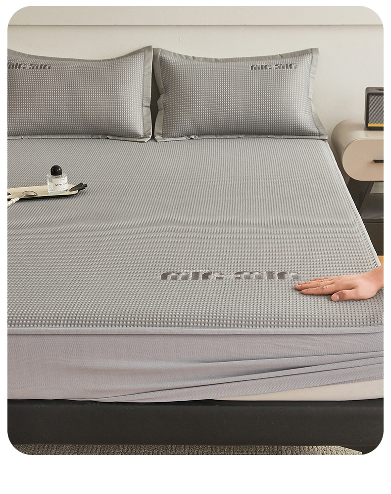 商品名称:布卢姆床垫 2025新款A类PE凉感华夫格刺绣凉豆豆席床笠款 豆豆床笠-深灰