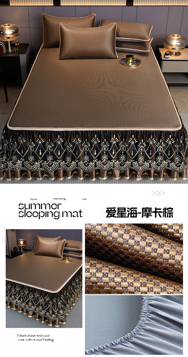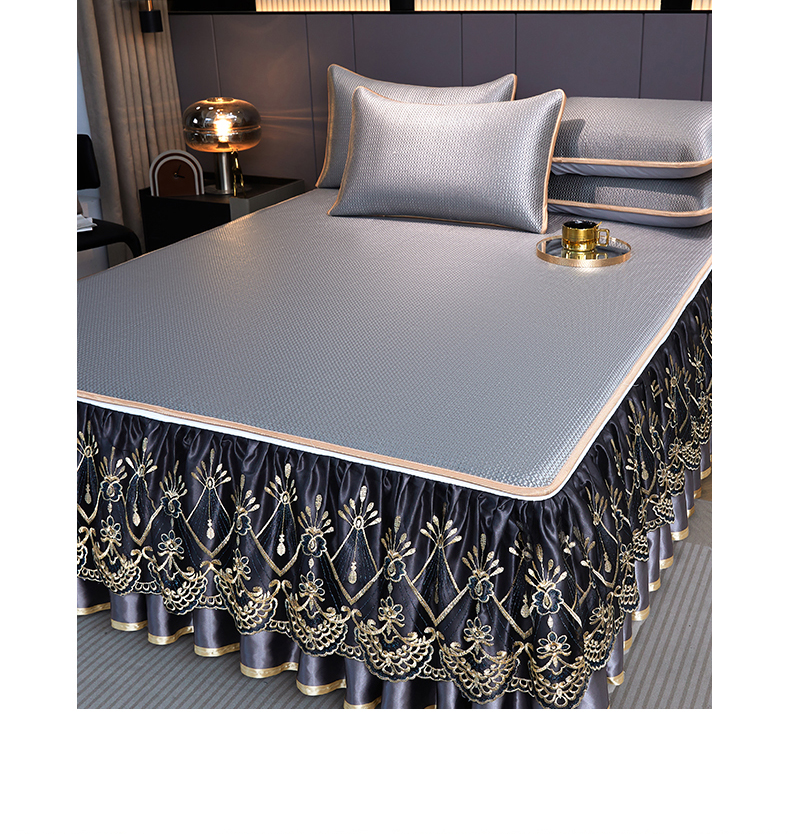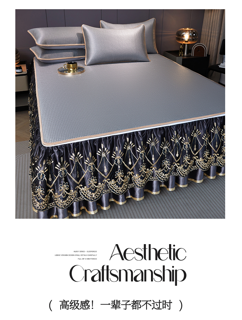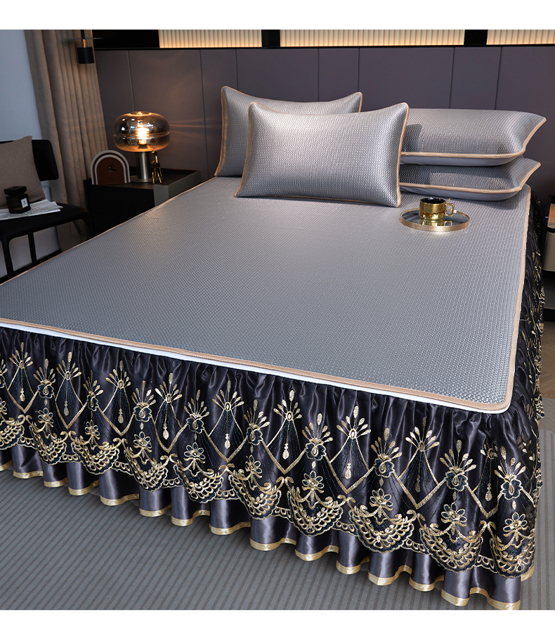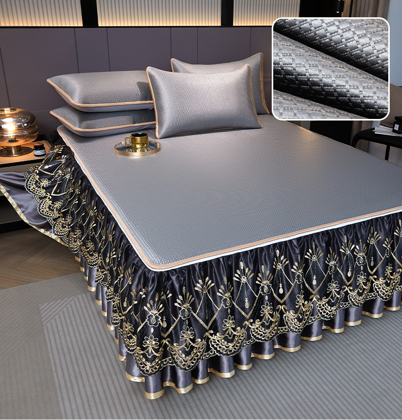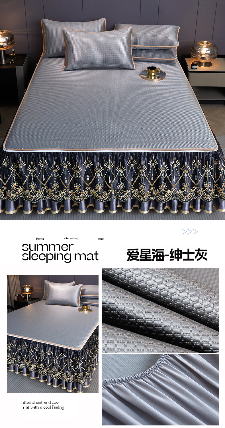 商品名称:罗艺轩 2025新款可拆卸床笠式床裙凉感冰丝藤席三件套-爱星海 爱星海-绅士灰