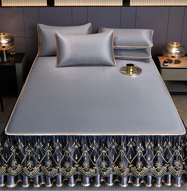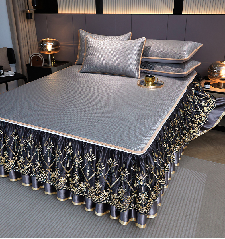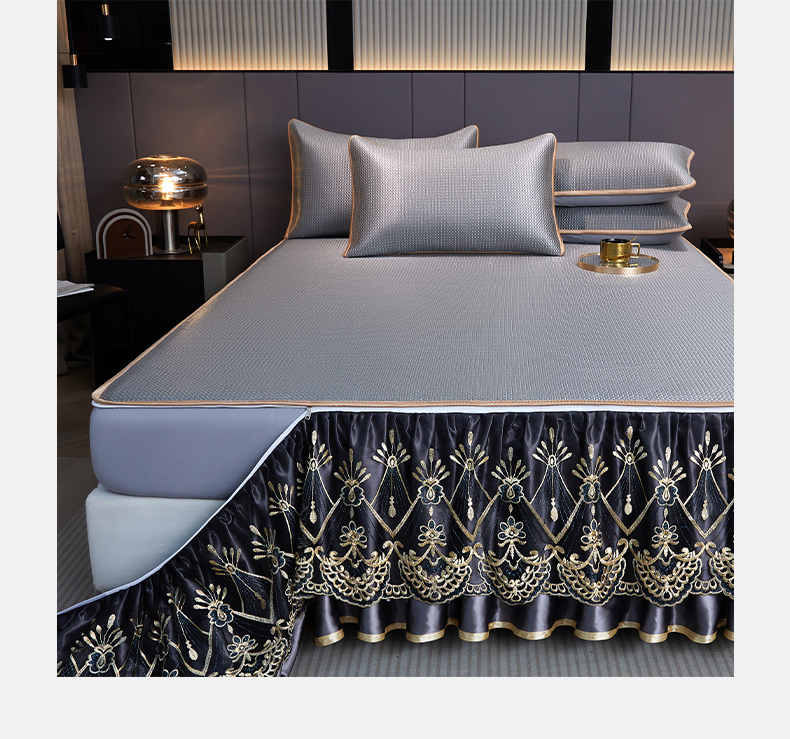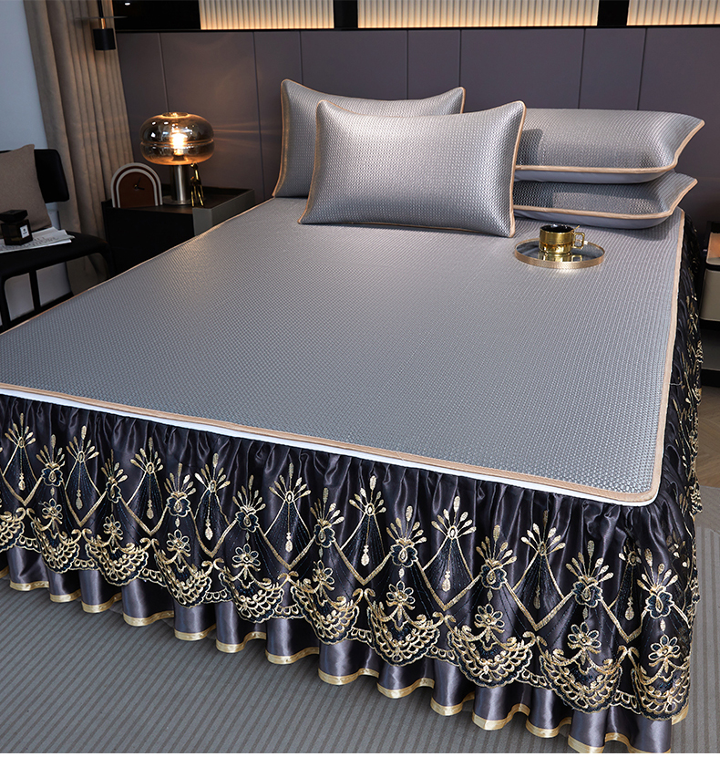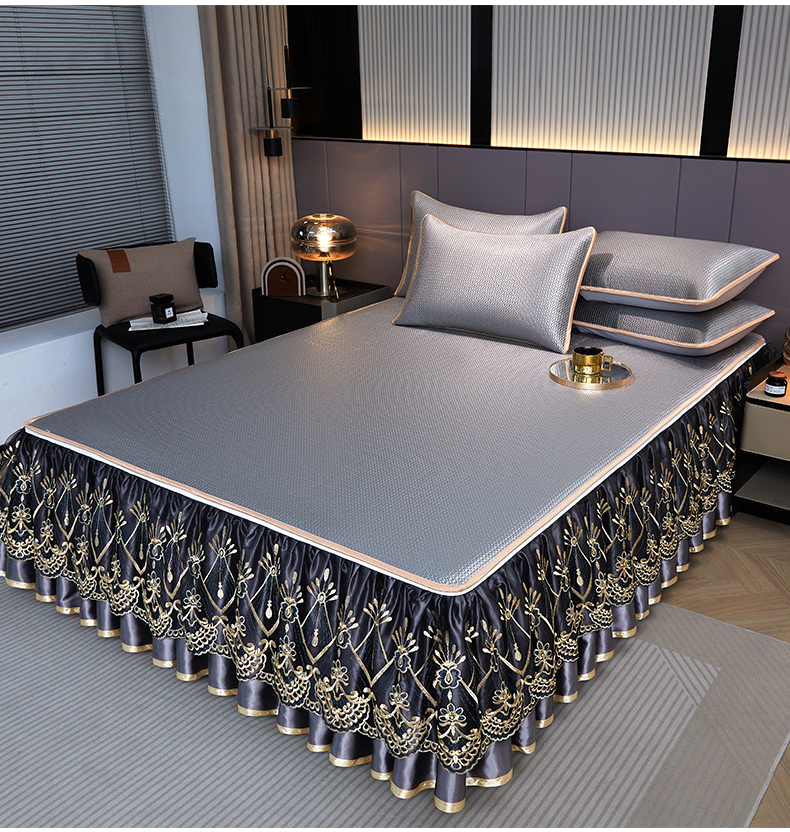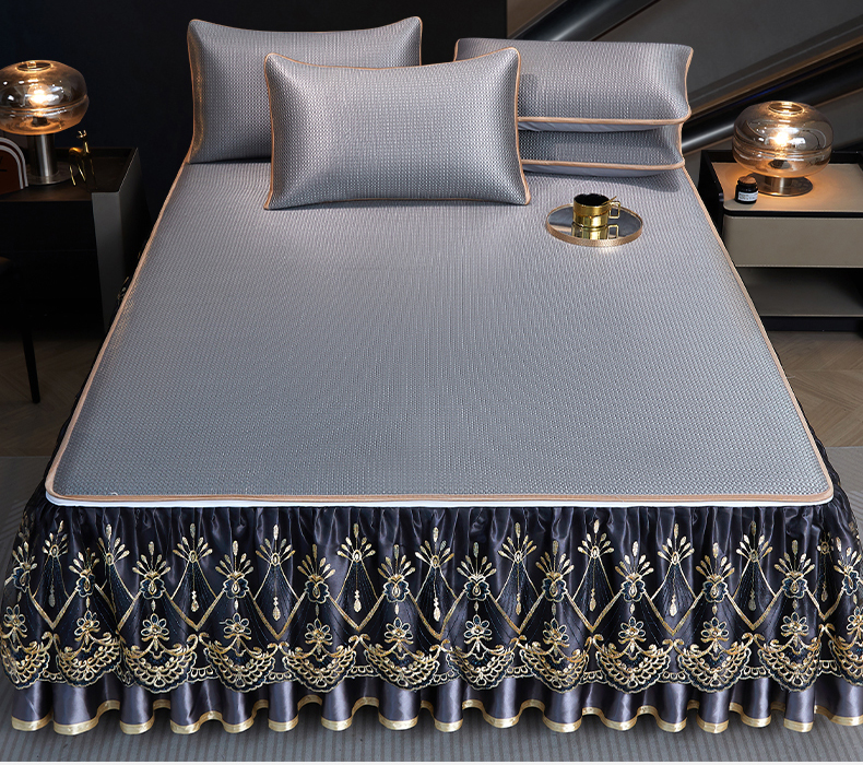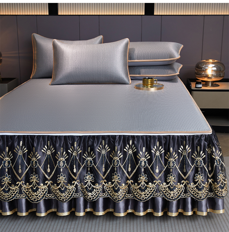 商品名称:罗艺轩 2025新款可拆卸床笠式床裙凉感冰丝藤席三件套-爱星海 爱星海-绅士灰