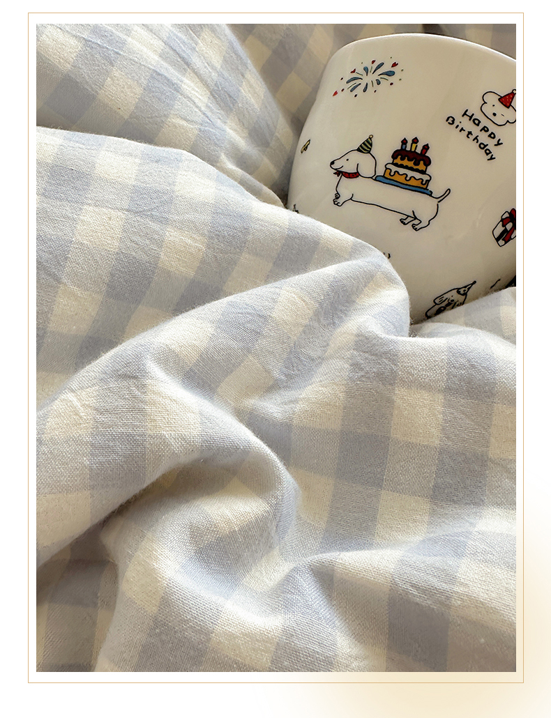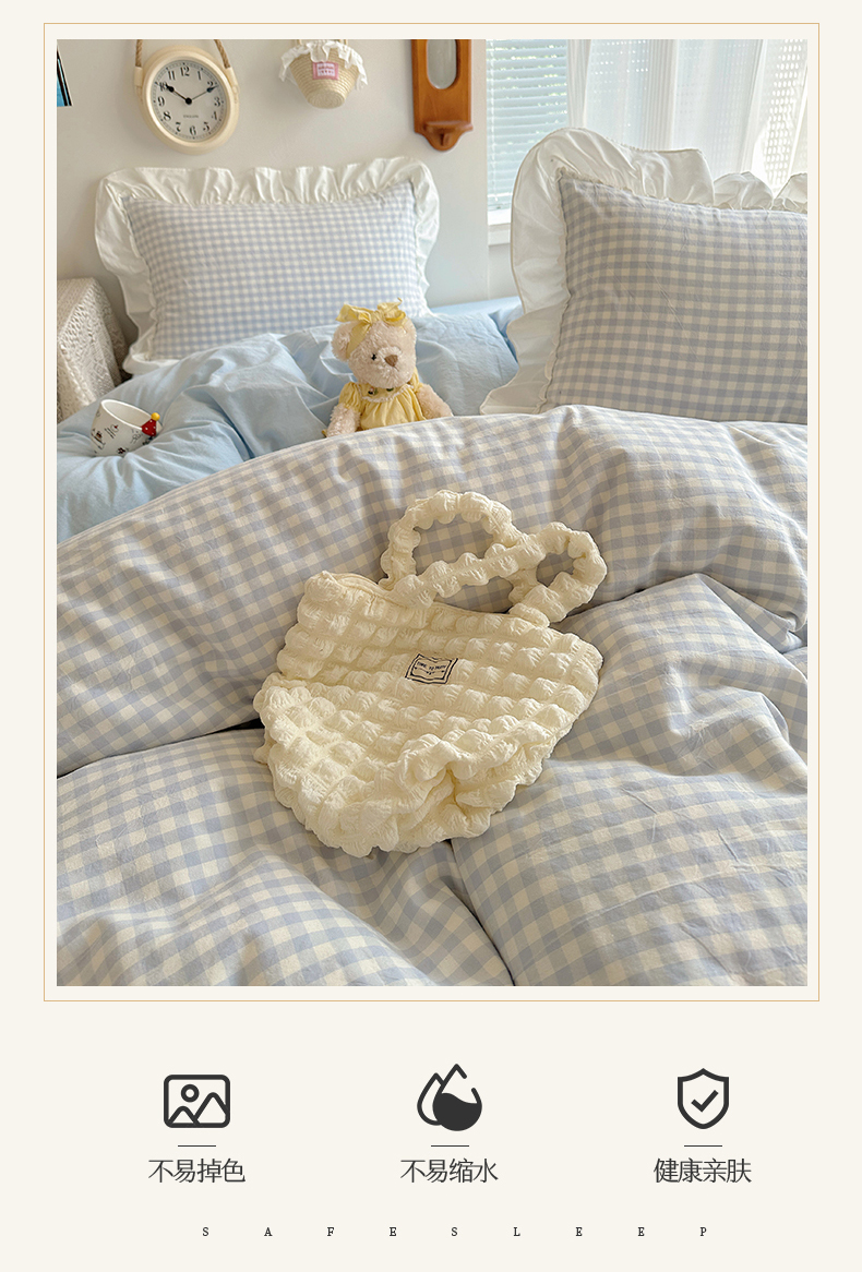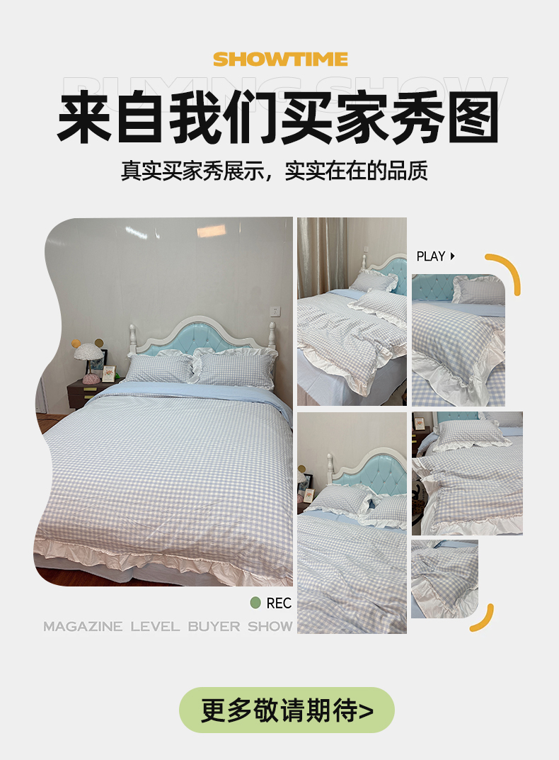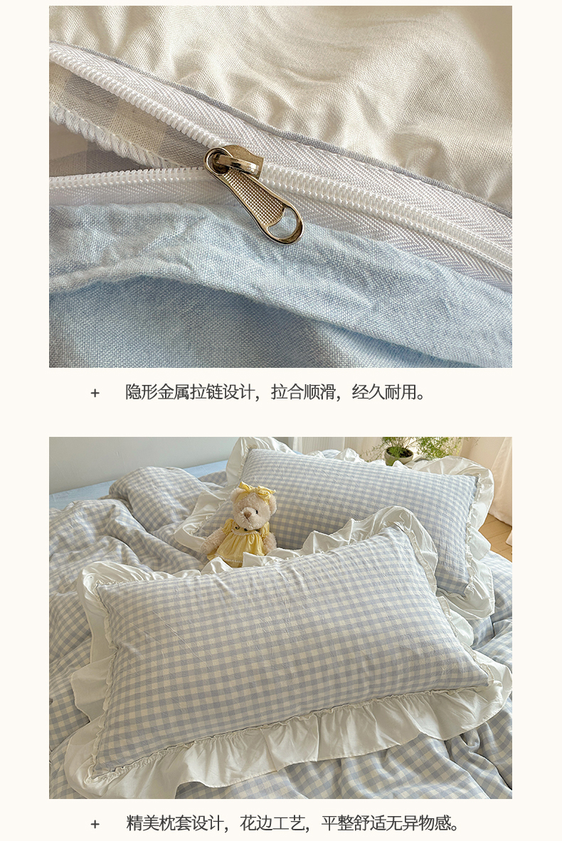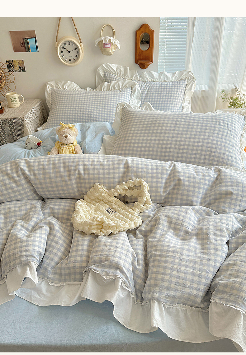 (总)有间小屋 2025新款A类ins韩系全棉水洗棉花边款四件套,花边黑小格,花边粉小格,花边红小格,花边黄小格,花边兰小格