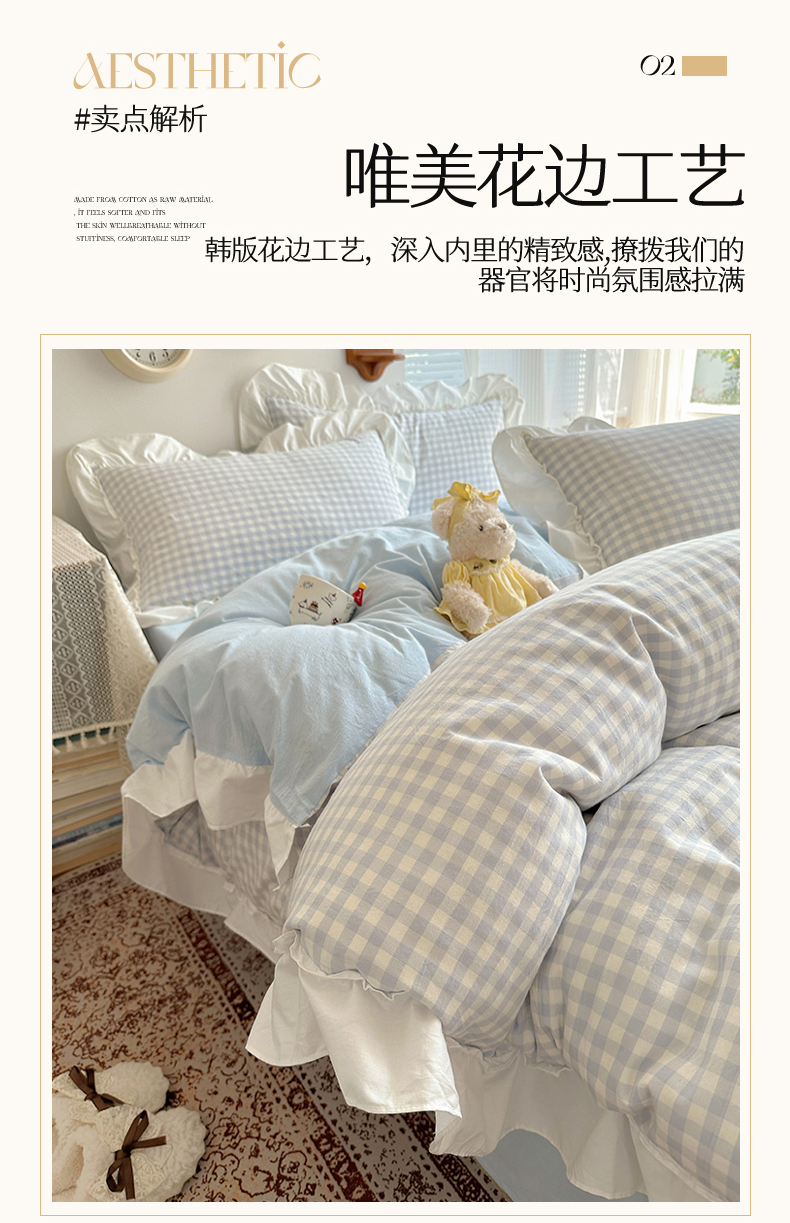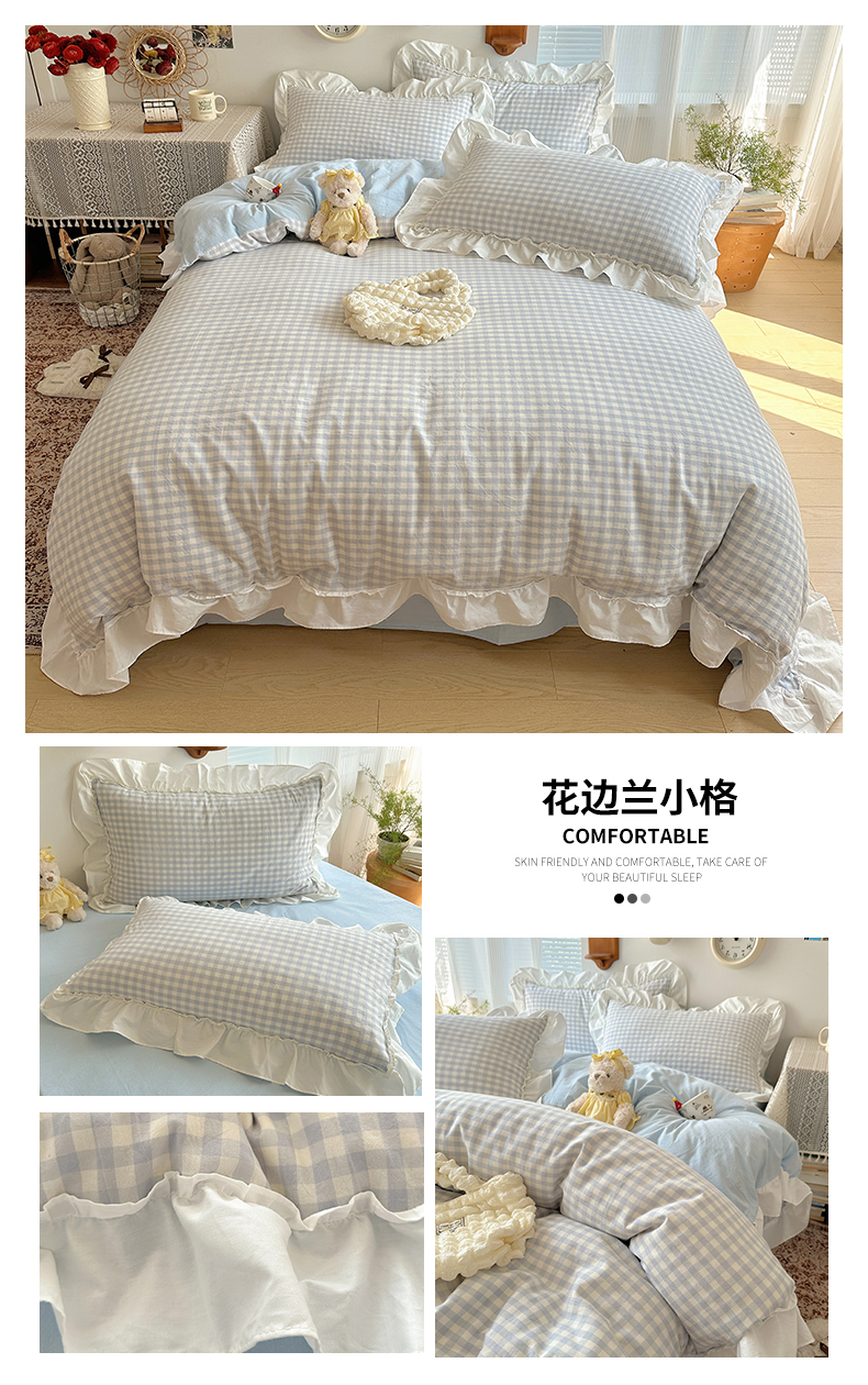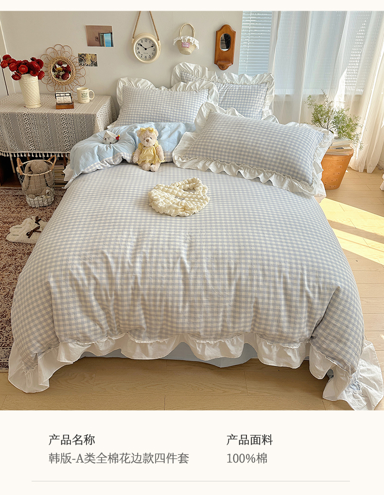 商品名称:(总)有间小屋 2025新款A类ins韩系全棉水洗棉花边款四件套
