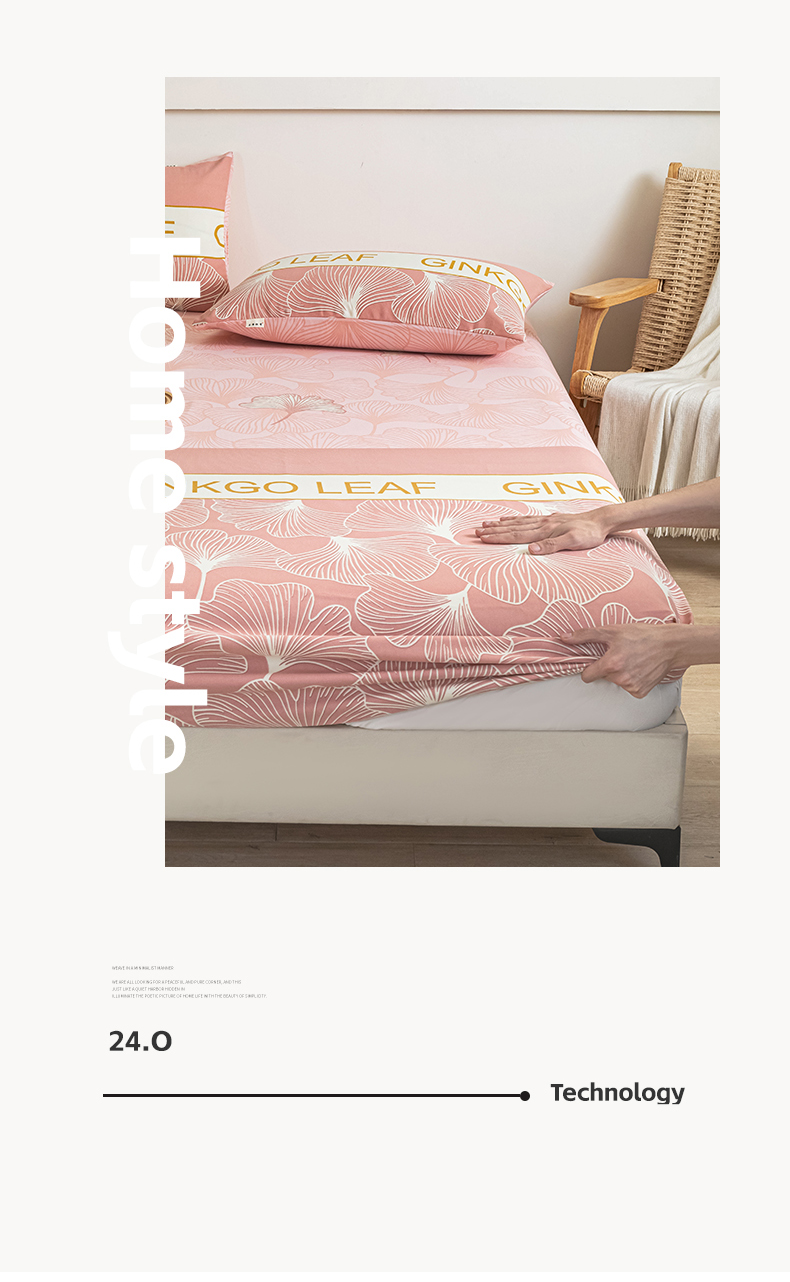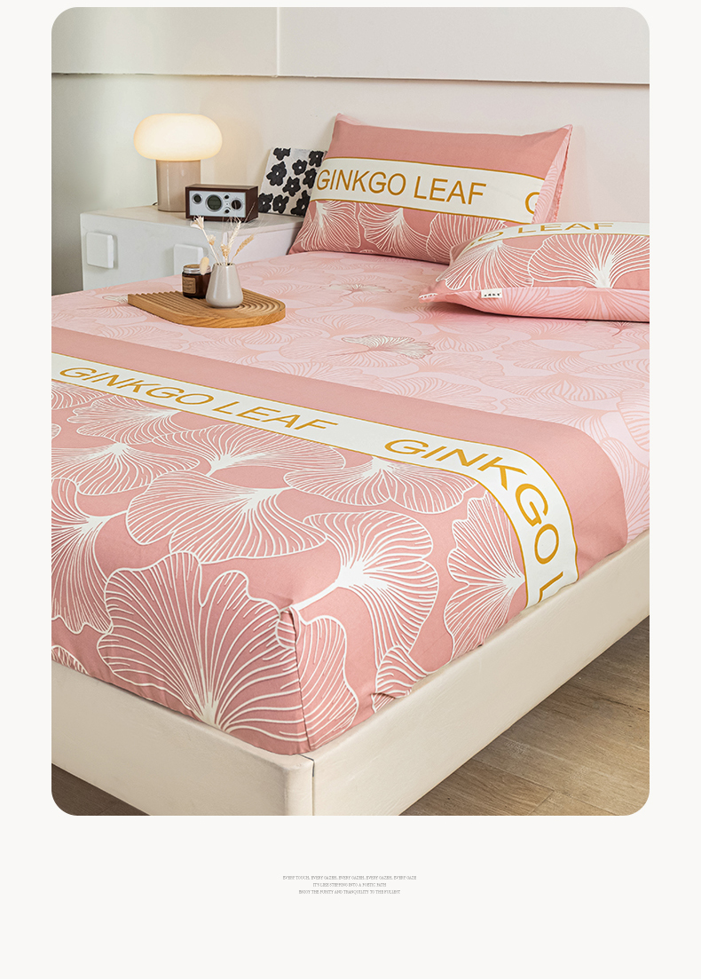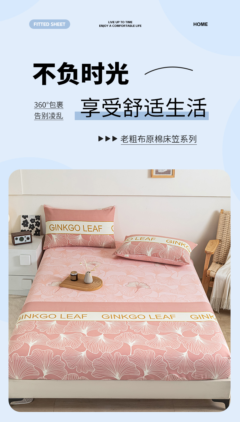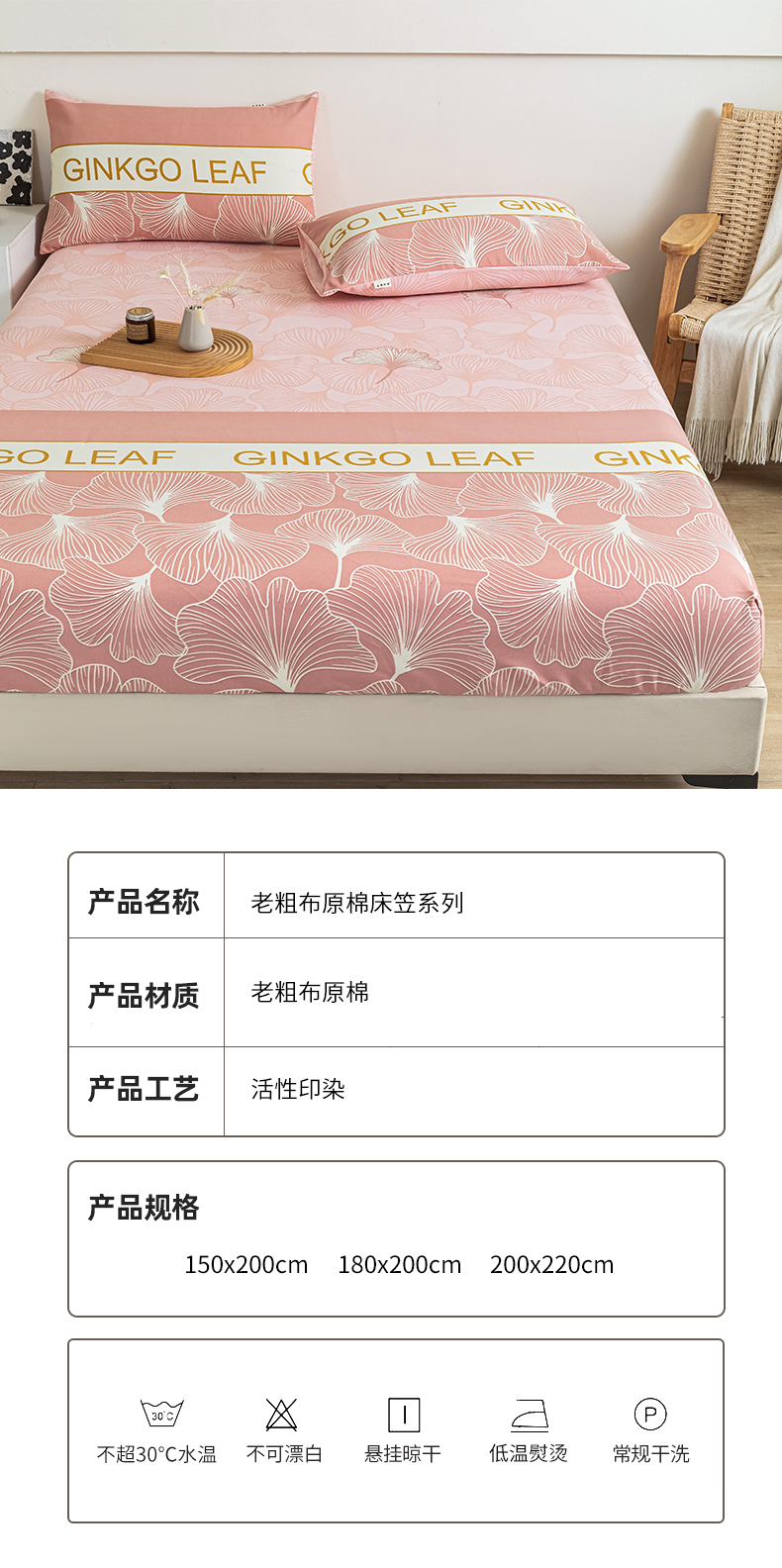 • 91家纺网 家纺一手货源 找家纺 芃成家纺 2025新款加厚老粗布原棉床笠亲肤单床笠 流光银杏-粉