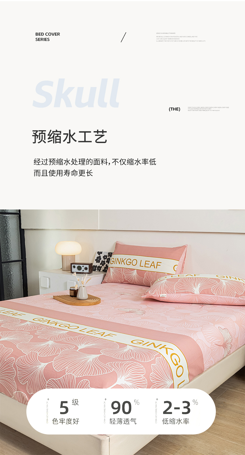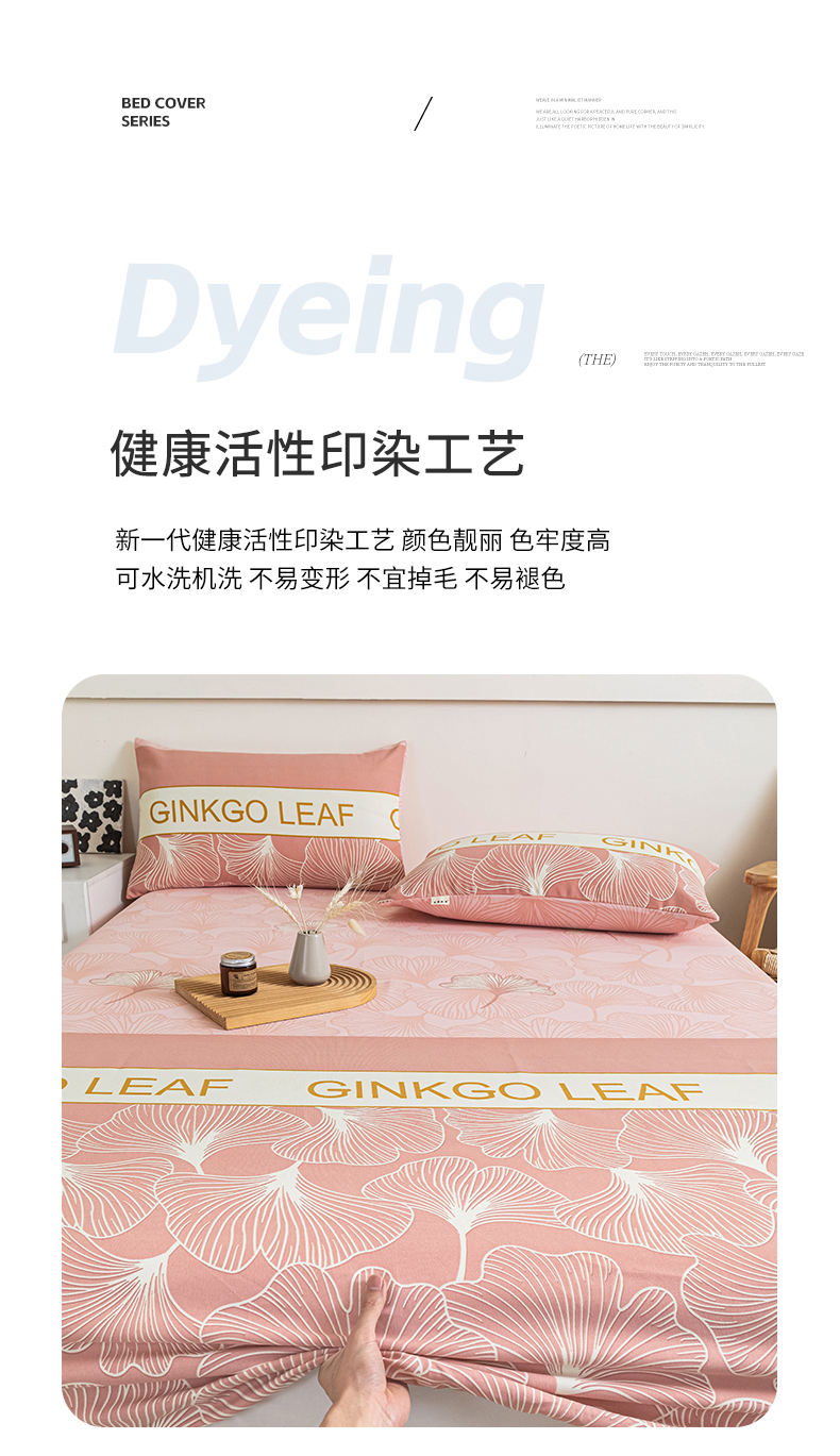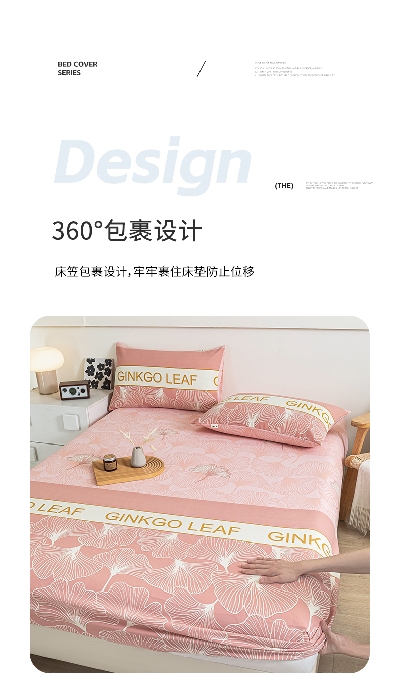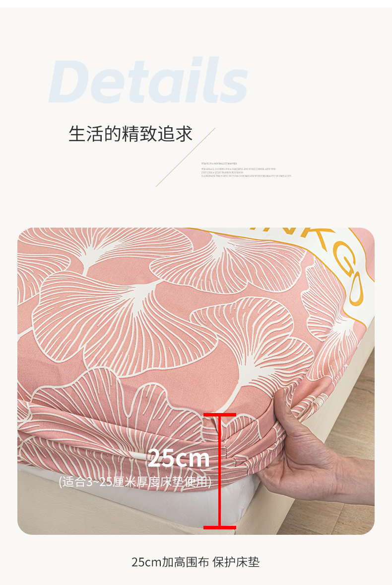 • 91家纺网 家纺一手货源 找家纺 芃成家纺 2025新款加厚老粗布原棉床笠亲肤单床笠 流光银杏-粉