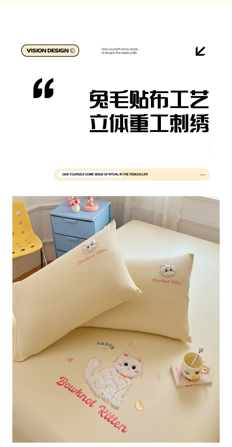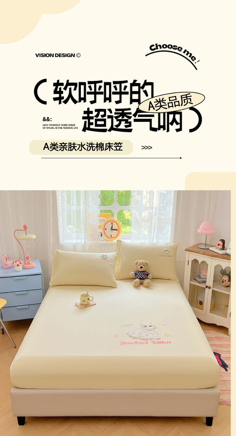 当前位置: 91家纺网 > 商品网购 > 床品套件 > 三件套 > 梦舒羽 2025春夏新款兔毛贴布绣卡通ins风水洗棉床笠学生宿舍床罩床垫保护垫三件套(带买家秀) 呆萌奶猫-芝士黄