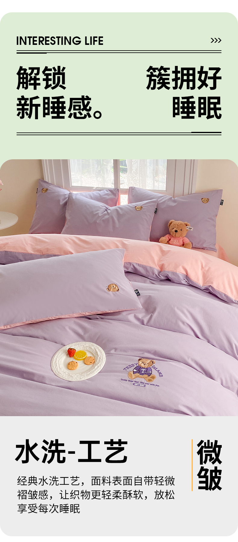 当前位置: 91家纺网 > 商品网购 > 床品套件 > 四件套 > 水洗棉四件套 > 泰迪爱兰Teddy ISLAND 2026新款32支全棉水洗棉绣花三件套四件套 浅雪青+浅玉