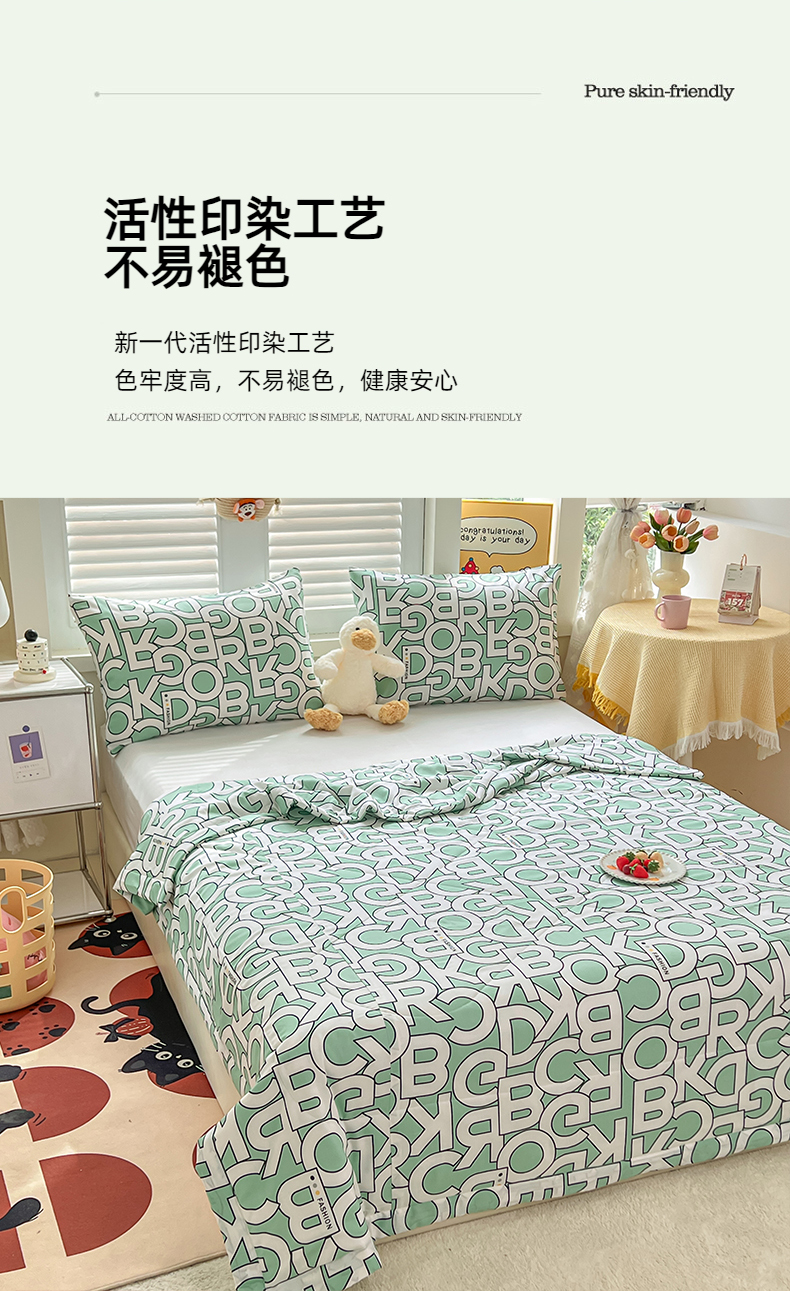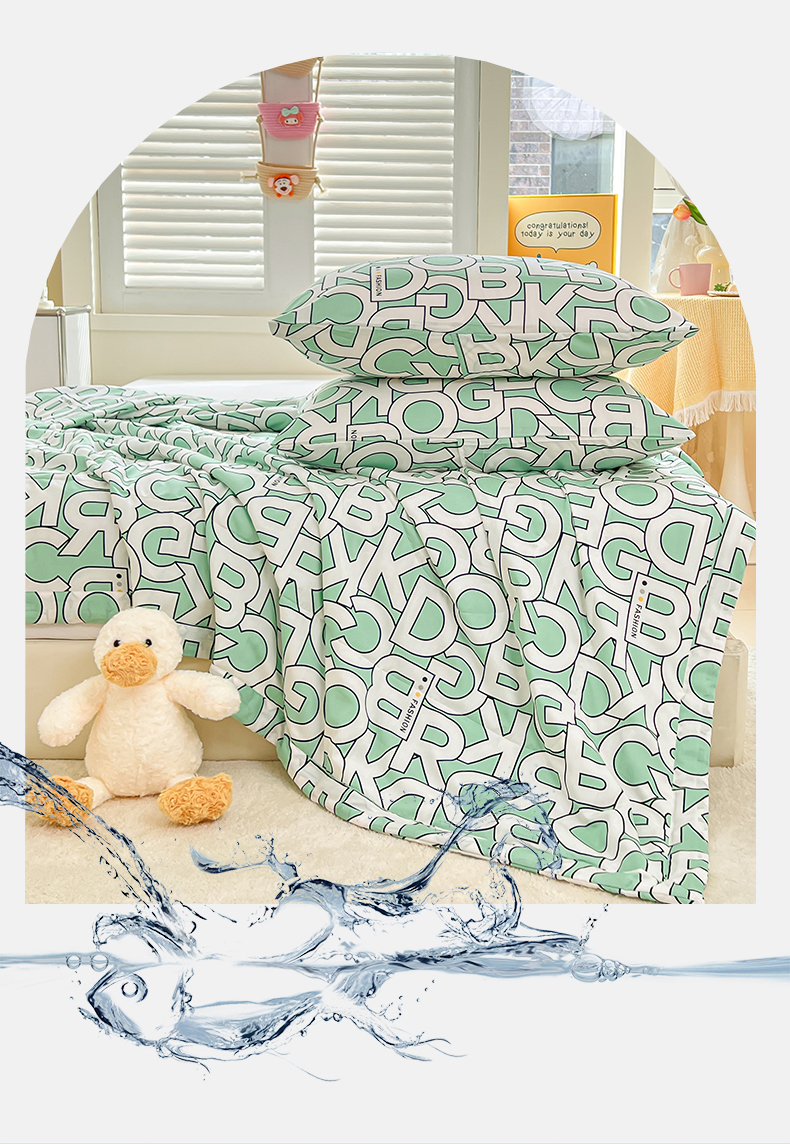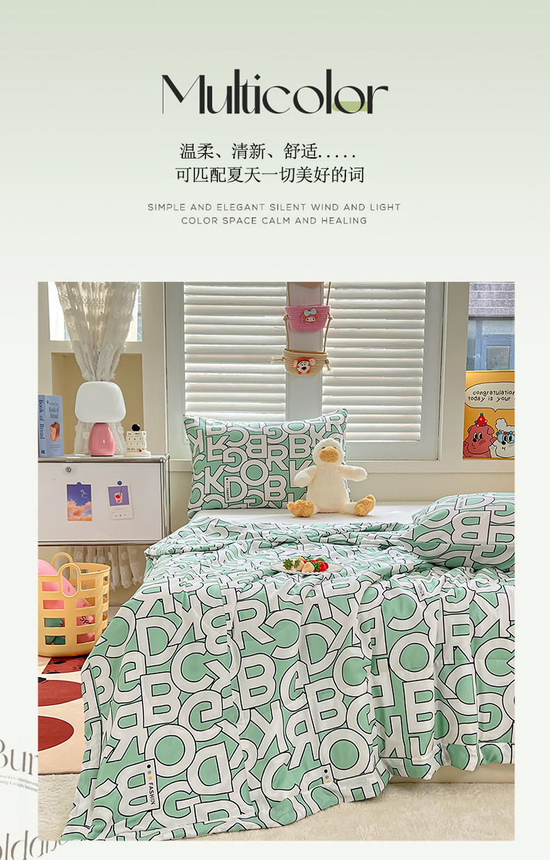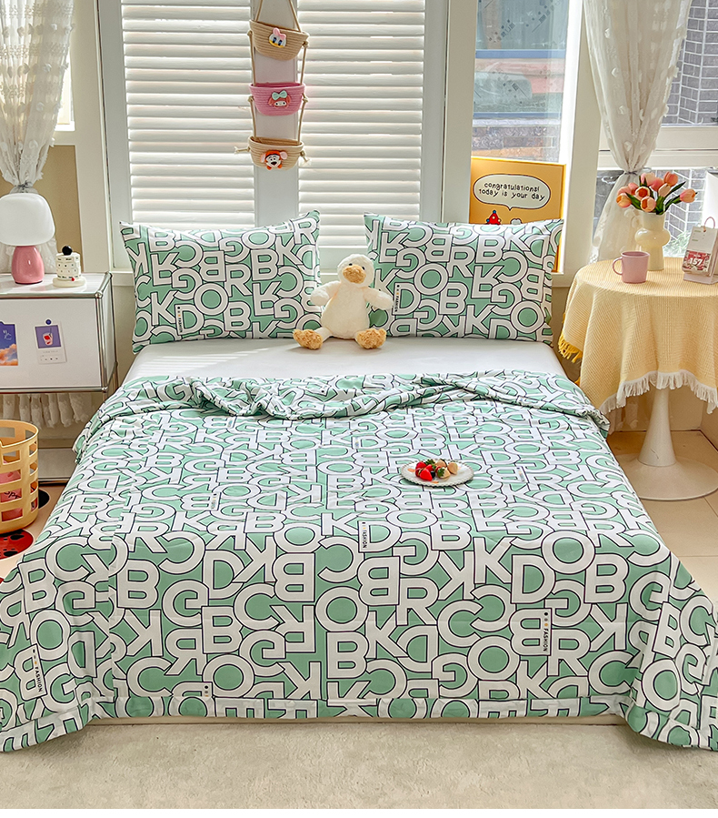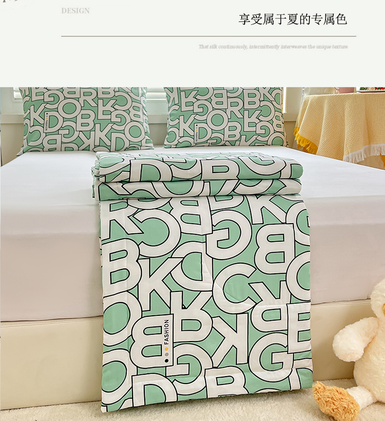 商品名称:天瑜家纺 2025新款棉绸夏被苏香绸舒香绸夏凉被人造棉空调被 字母绿