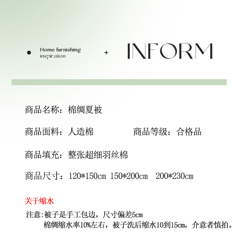 适用季节: 空调被/夏凉被