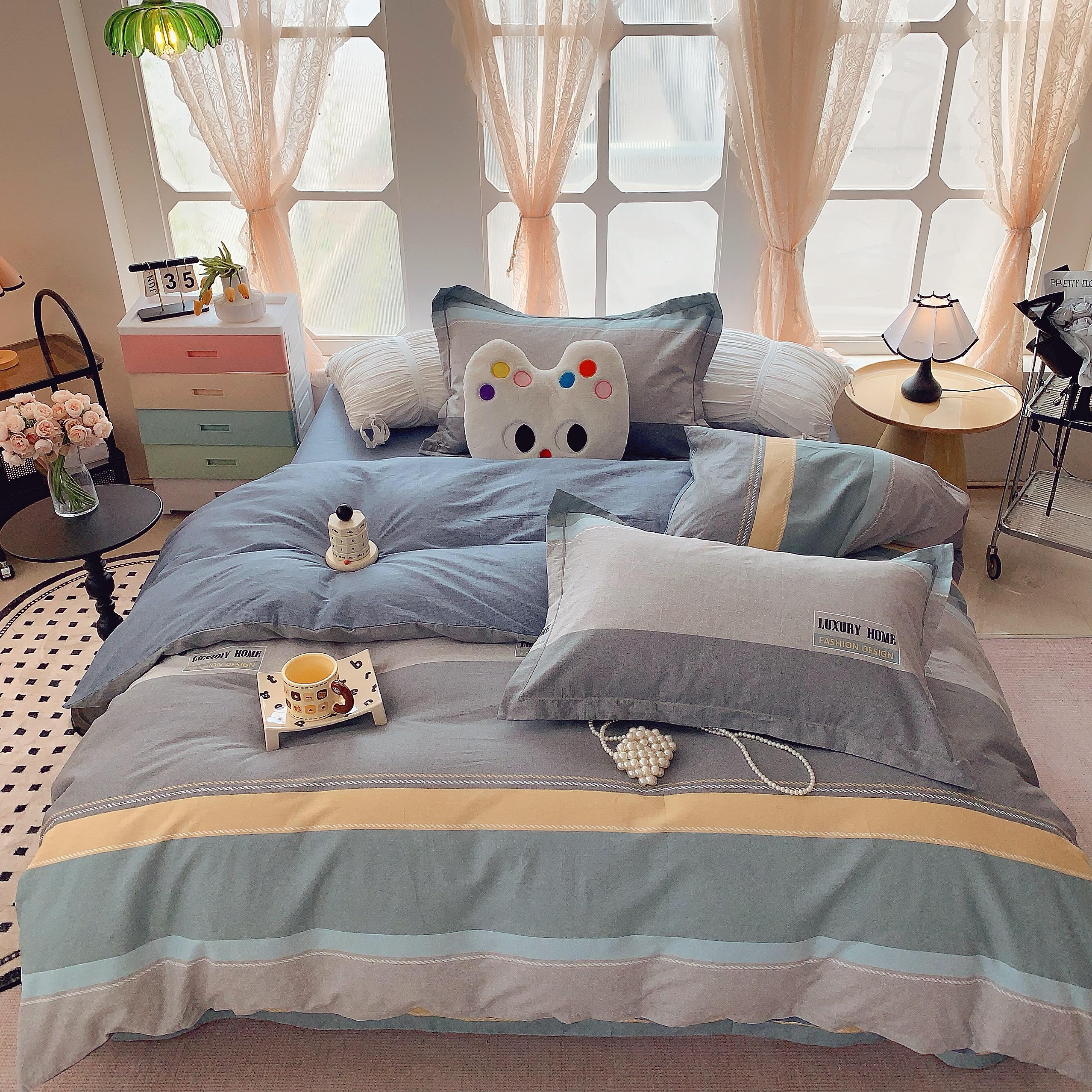 (总)莱豫家纺 2025新款小清新全棉纯棉四件套,爱心豹纹,白薇,春黛,芳华,锦绣咖,锦绣米,可爱狗狗咖,太空超人,甜橘,童年,仙本娜,小飞马,小小花园,星星人黄,星星人蓝,雅蔓