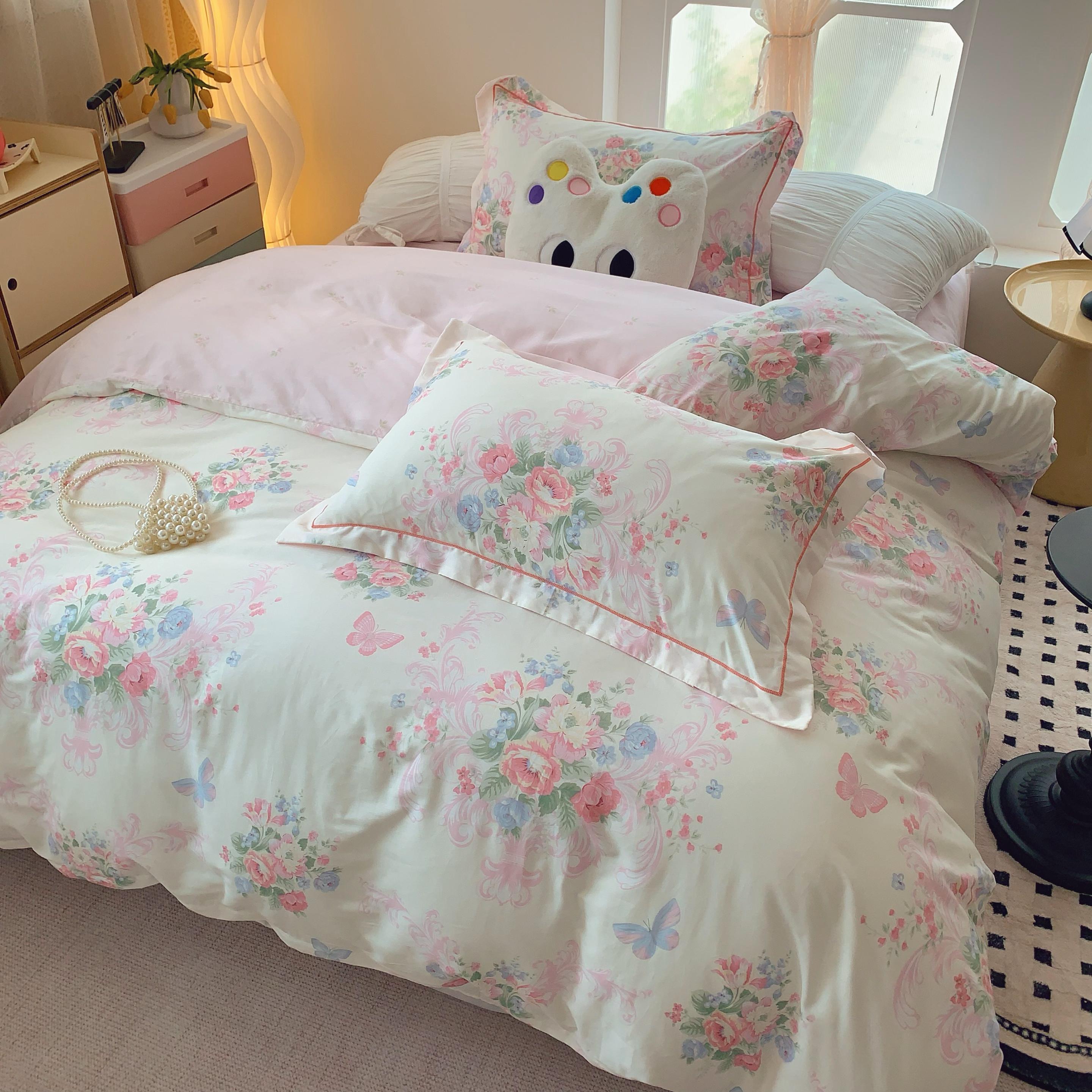 莱豫家纺 2025新款亲肤舒适小清新印花纯棉四件套 紫薇