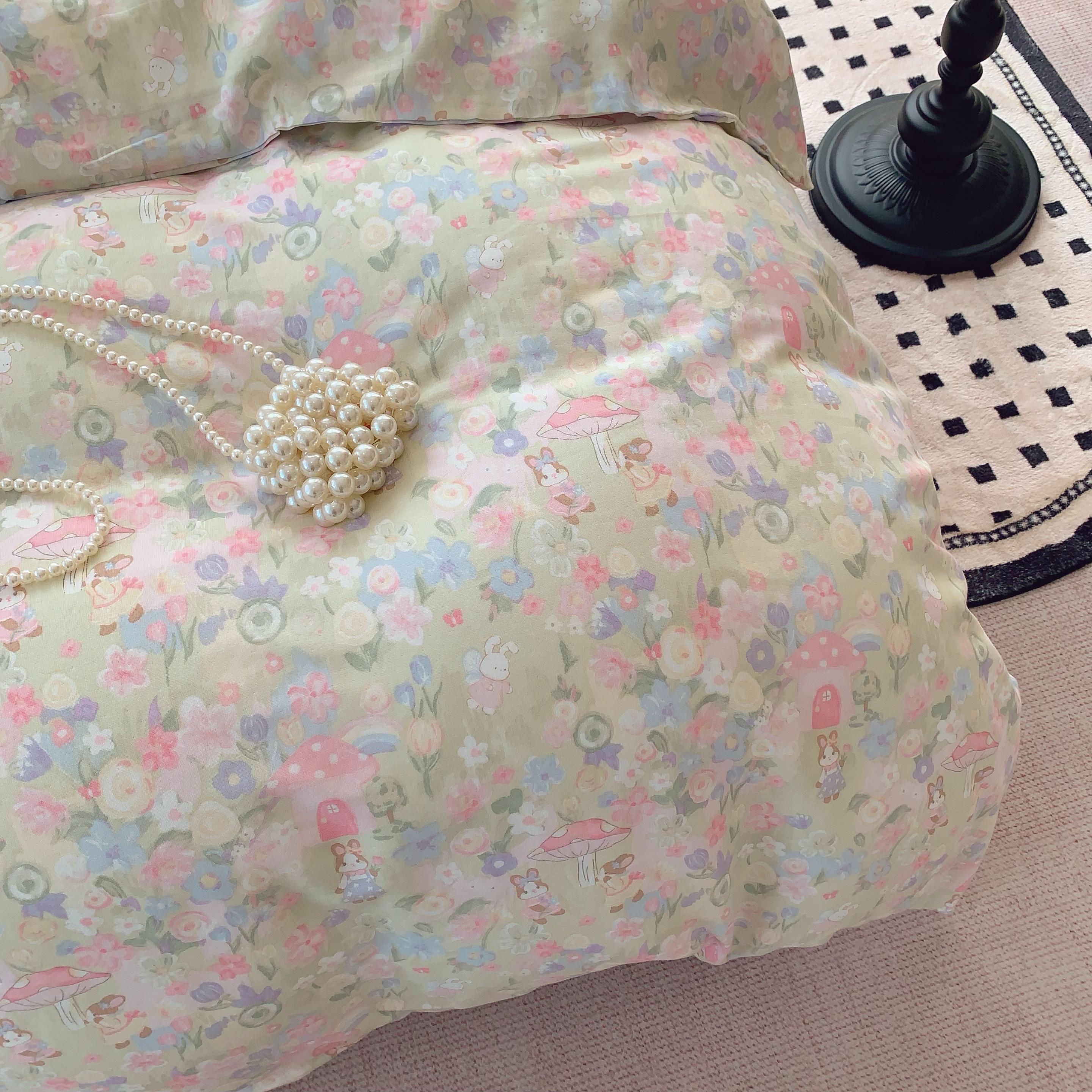 商品名称:莱豫家纺 2025新款亲肤舒适双层纱四件套 花园小兔
