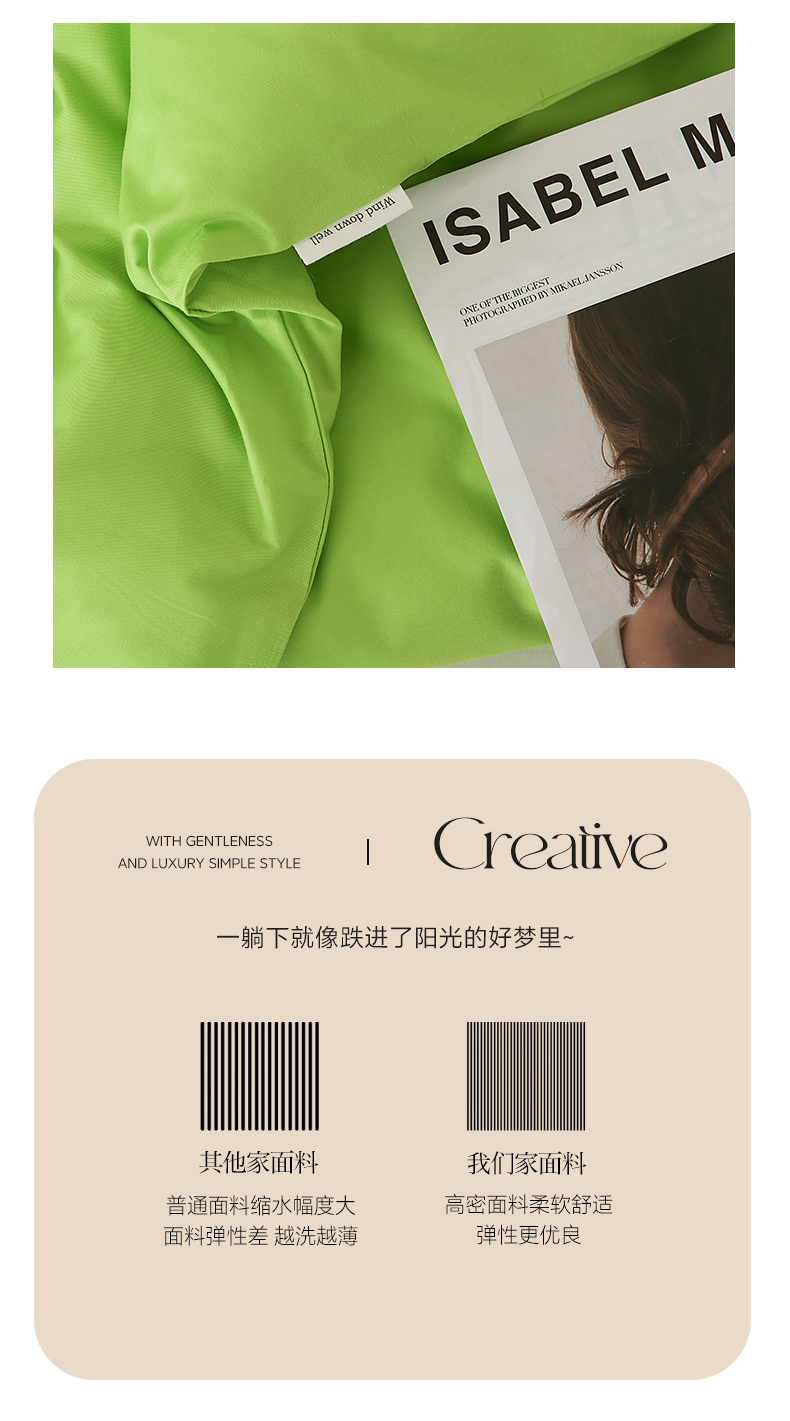 商品名称:EH家居 2025全棉半糖主义-单品系列-被套 半糖-苹果绿