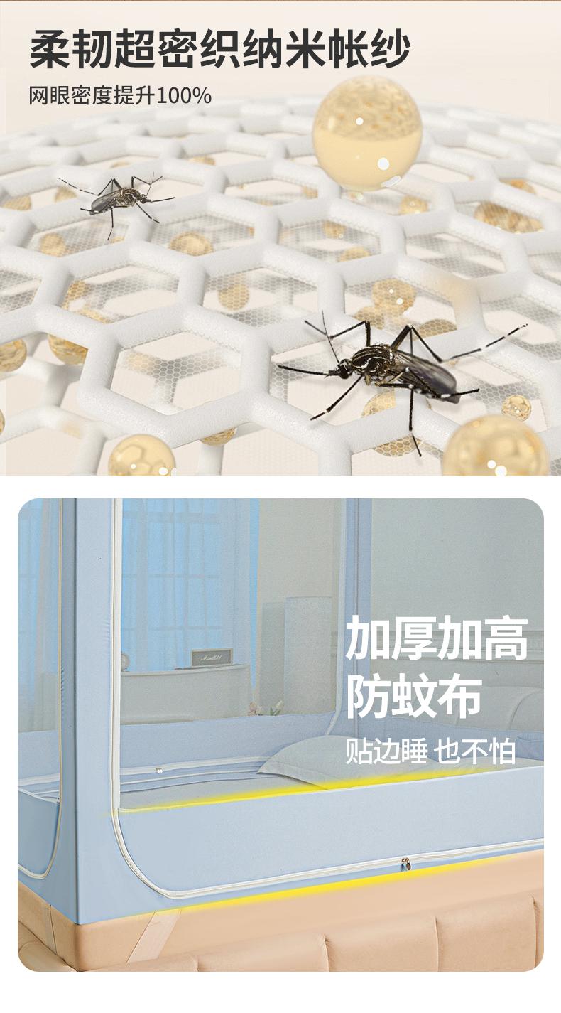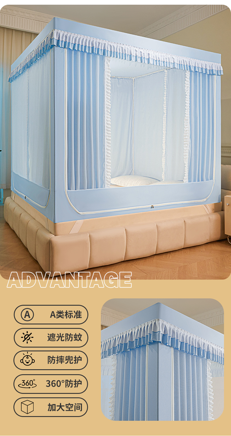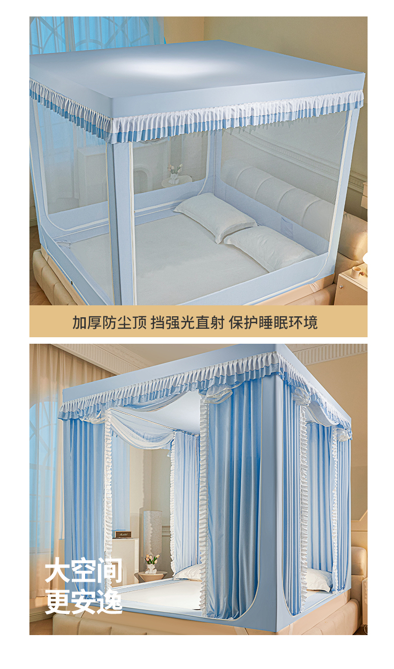 当前位置: 91家纺网 > 商品网购 > 床上用品 > 蚊帐 > 坐床式蚊帐 > 浪幔纱蚊帐 2025新款A类遮光防摔蚊帐坐床拉链全底回底纯色加厚支架 舒雅蓝【全底带帘款】