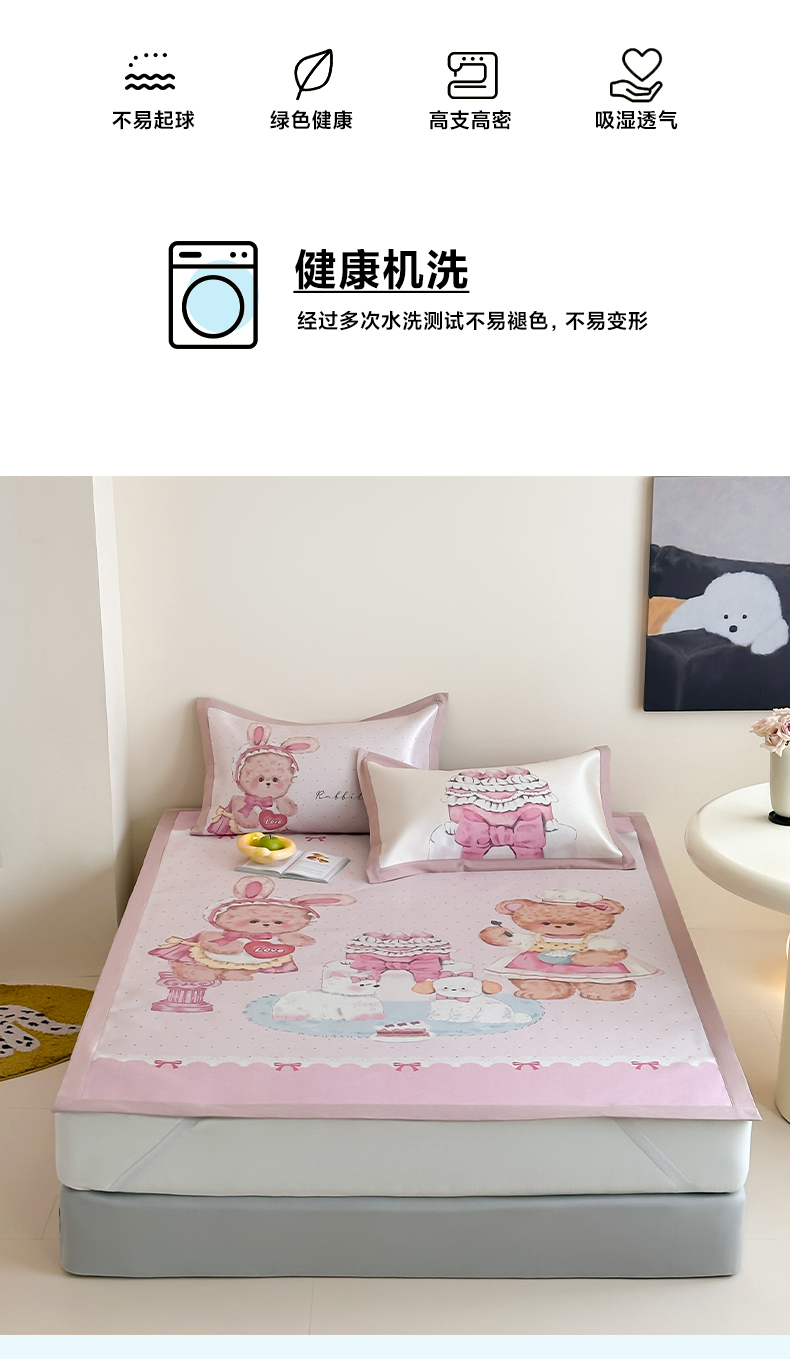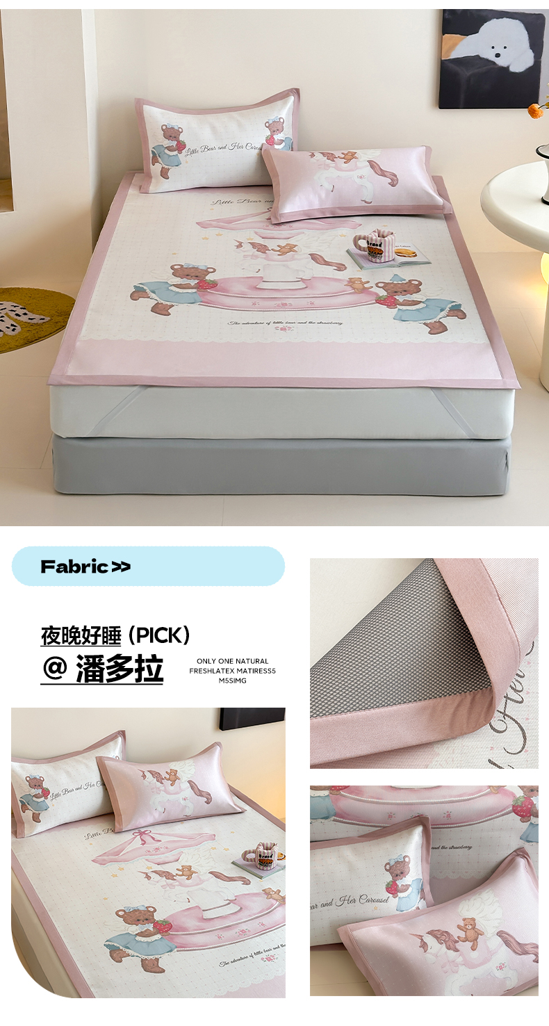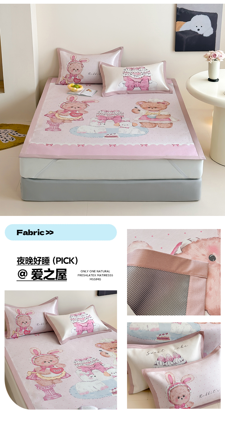 澳萝拉 2022新款凉感丝乳胶凉席-蓝心小熊,蓝心小熊
