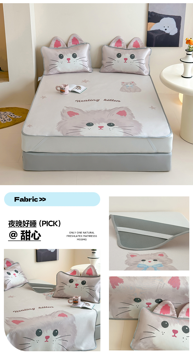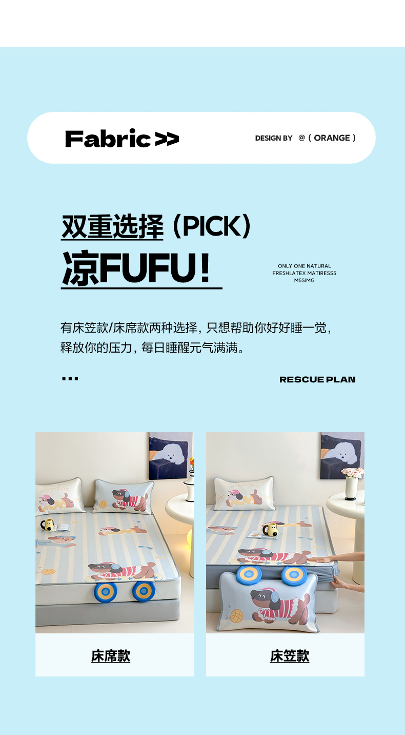 澳萝拉 2022新款凉感丝乳胶凉席-蓝心小熊,蓝心小熊