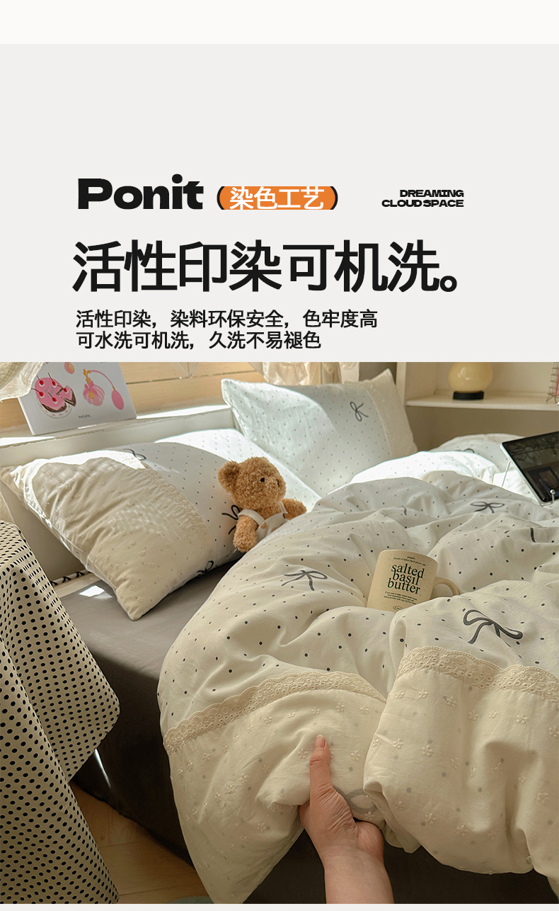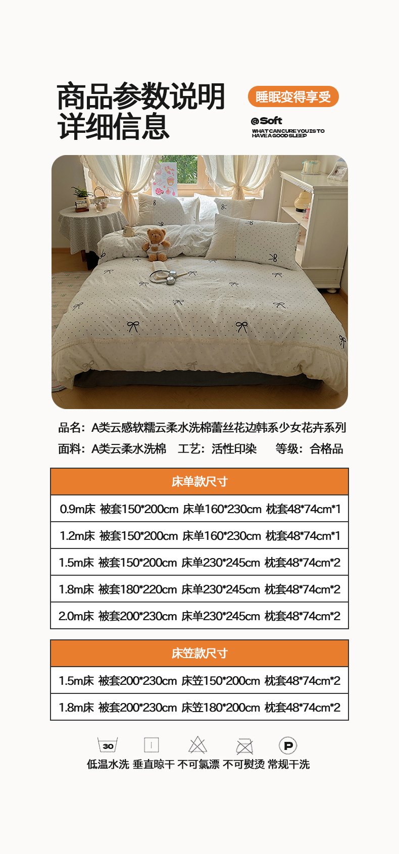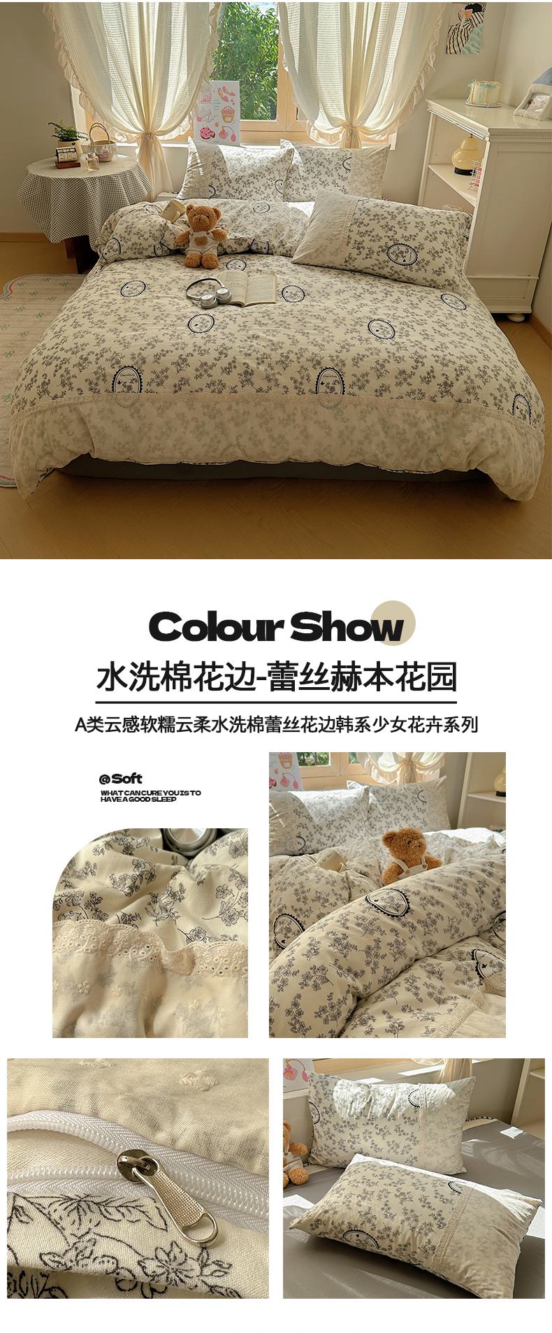 当前位置: 91家纺网 > 商品网购 > 床品套件 > 四件套 > 水洗棉四件套 > 桃心家居 2025新款云感水洗棉蕾丝花边四件套 水洗棉花边-蕾丝生椰玛奇朵
