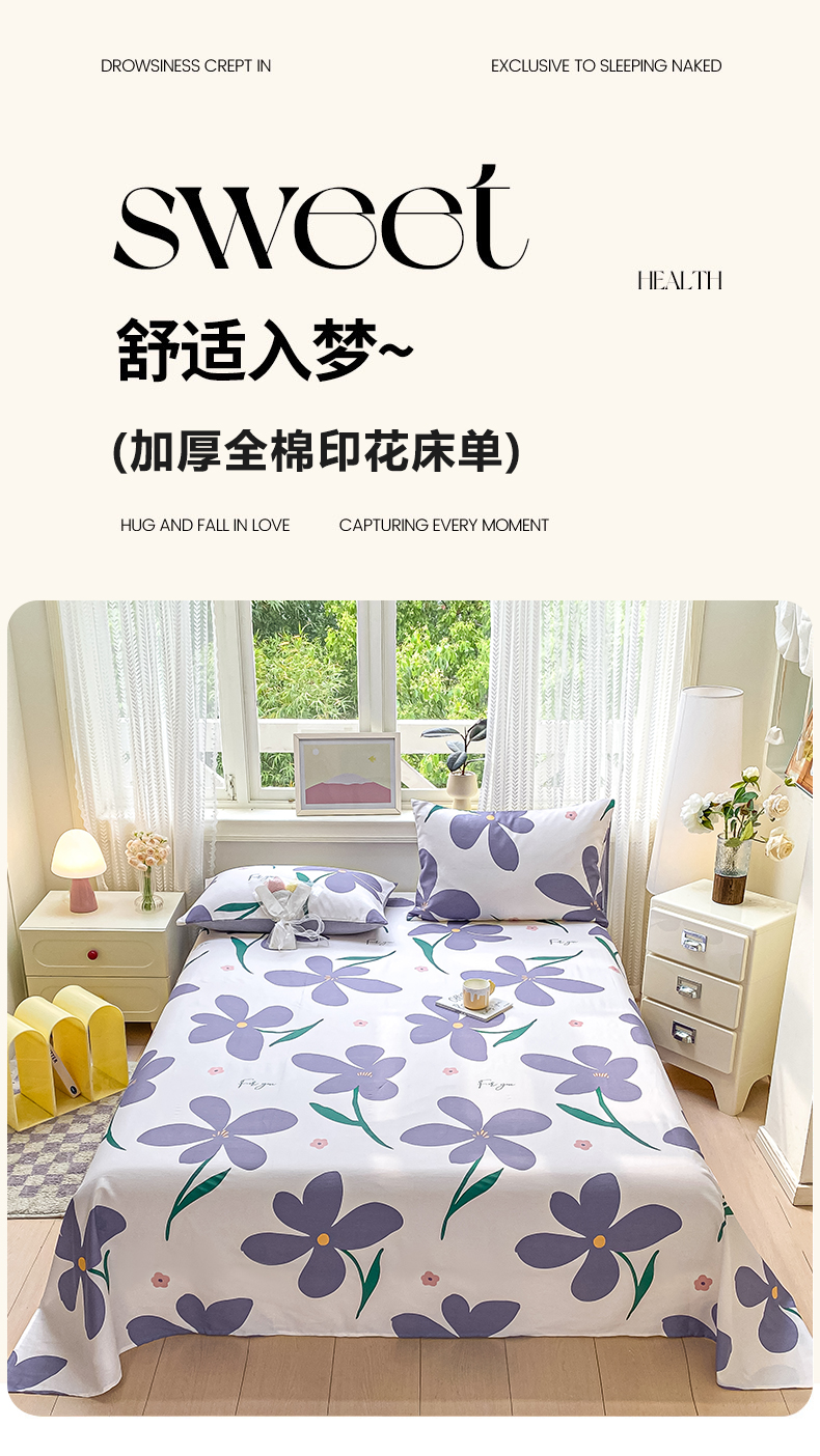 黑马家居 2025新款全棉纯棉印花单床单床单单件 幽雅