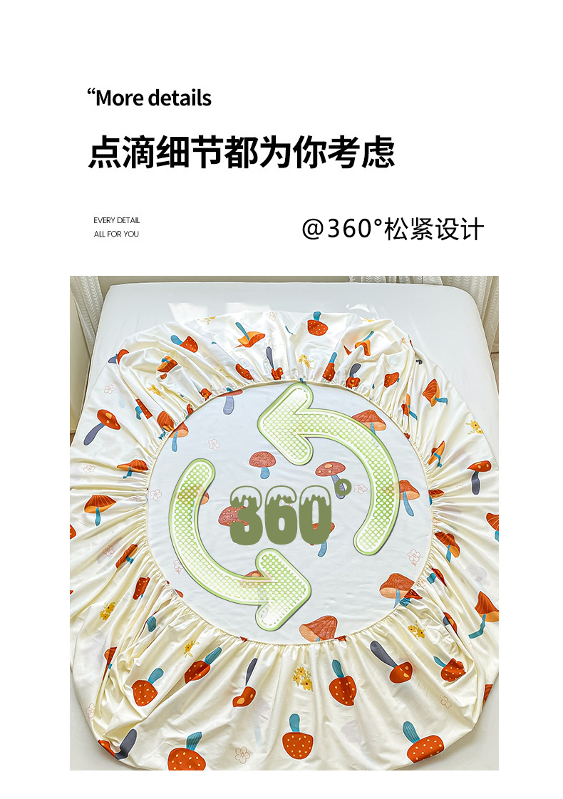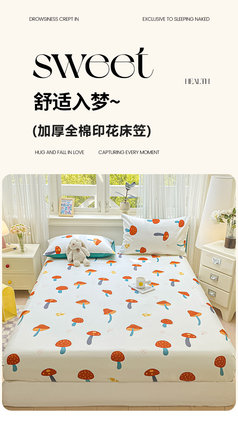 黑马家居 2025新款全棉纯棉印花单床笠床笠单件 蘑菇