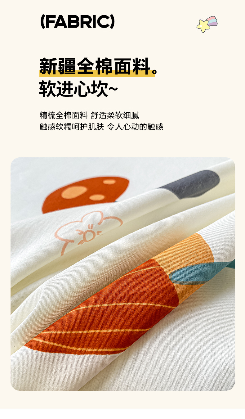 商品名称:黑马家居 2025新款全棉纯棉印花单床笠床笠单件 蘑菇