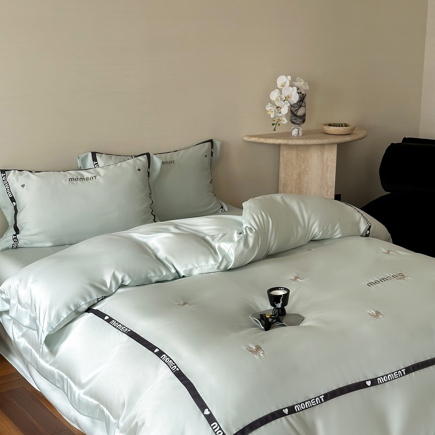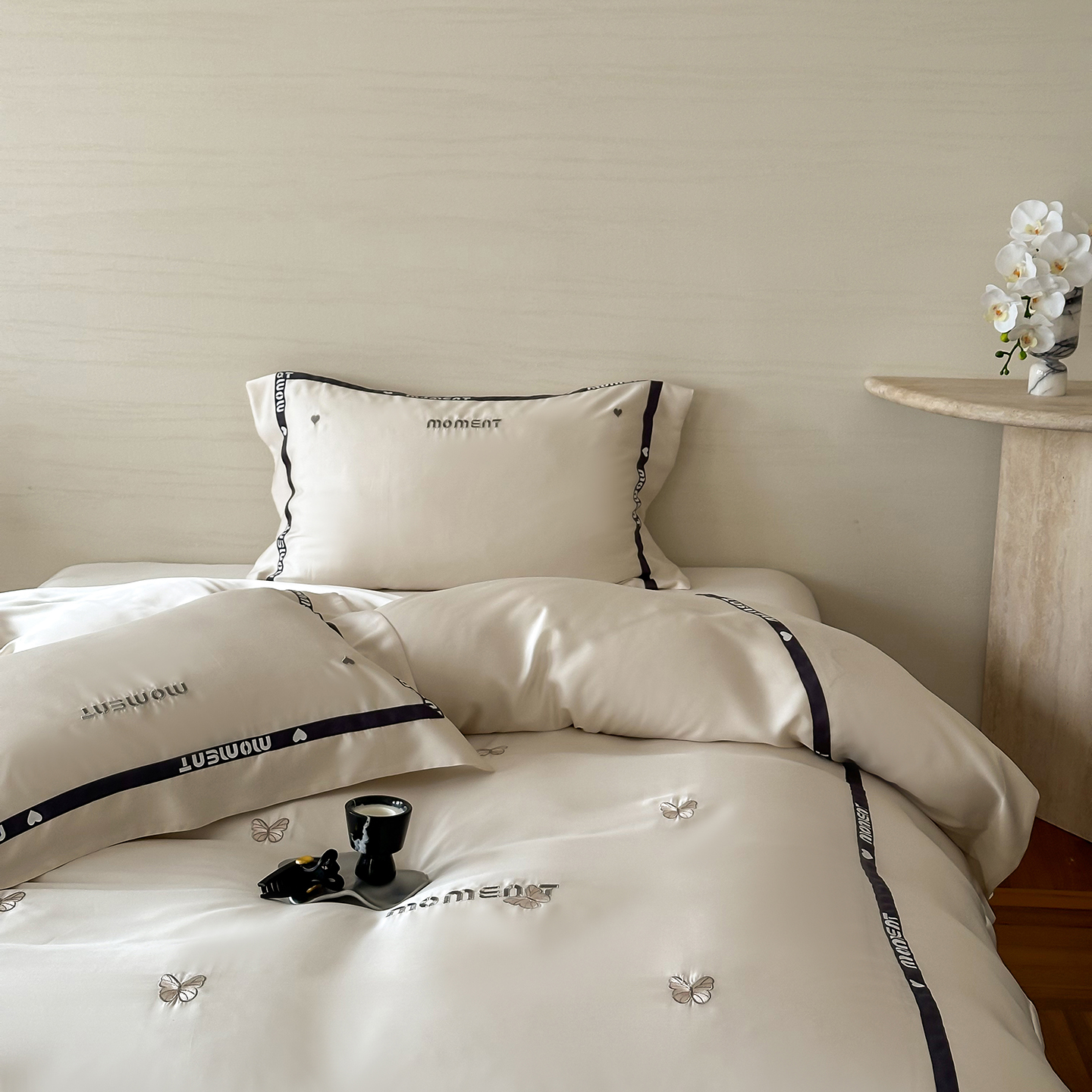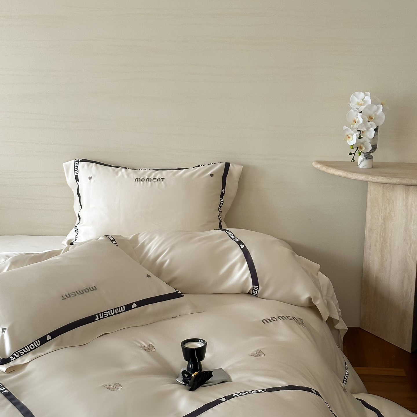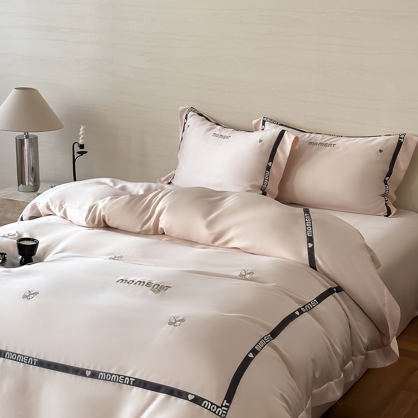 禾时 2025新款60S奥地利进口兰精天丝绣花黑边款四件套-蓓莉 蓓莉-粉