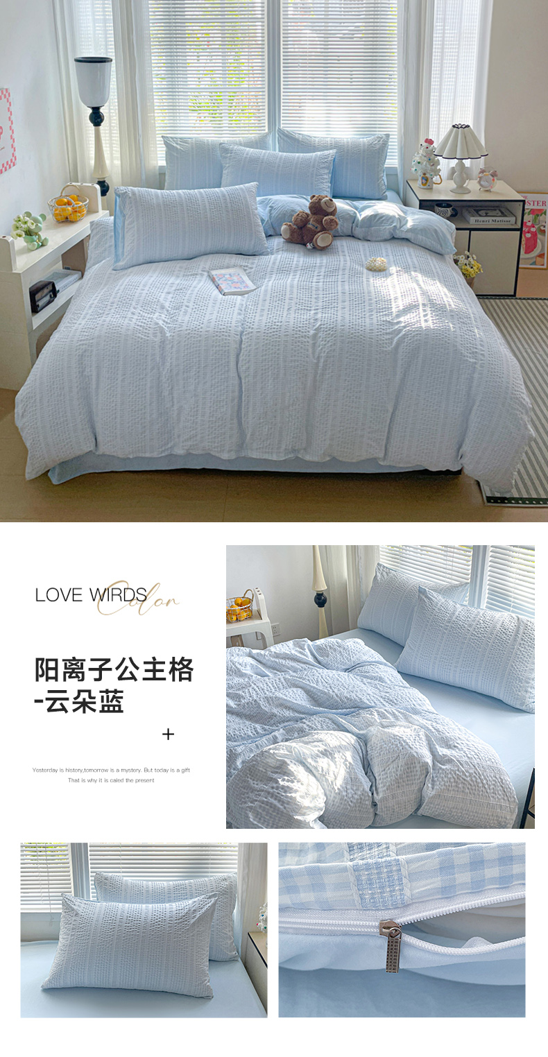 当前位置: 91家纺网 > 商品网购 > 床品套件 > 四件套 > 卡普家居 2025新款A类阳离子公主格四件套 阳离子公主格-云朵蓝