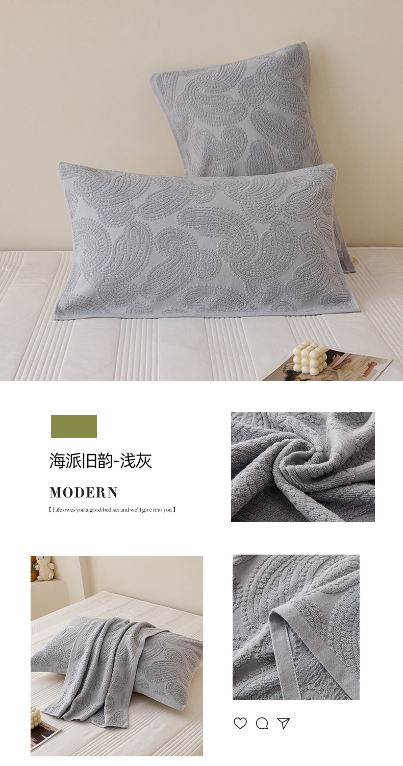 商品名称:悦然毛巾被 2025新款全棉纯棉老式枕巾毛圈款 海派旧韵浅灰