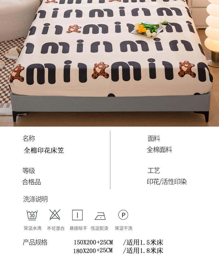 商品名称:贝兰仙奴 2025春夏新款全棉纯棉12868印花单床笠 床笠单件 熊仔贝贝
