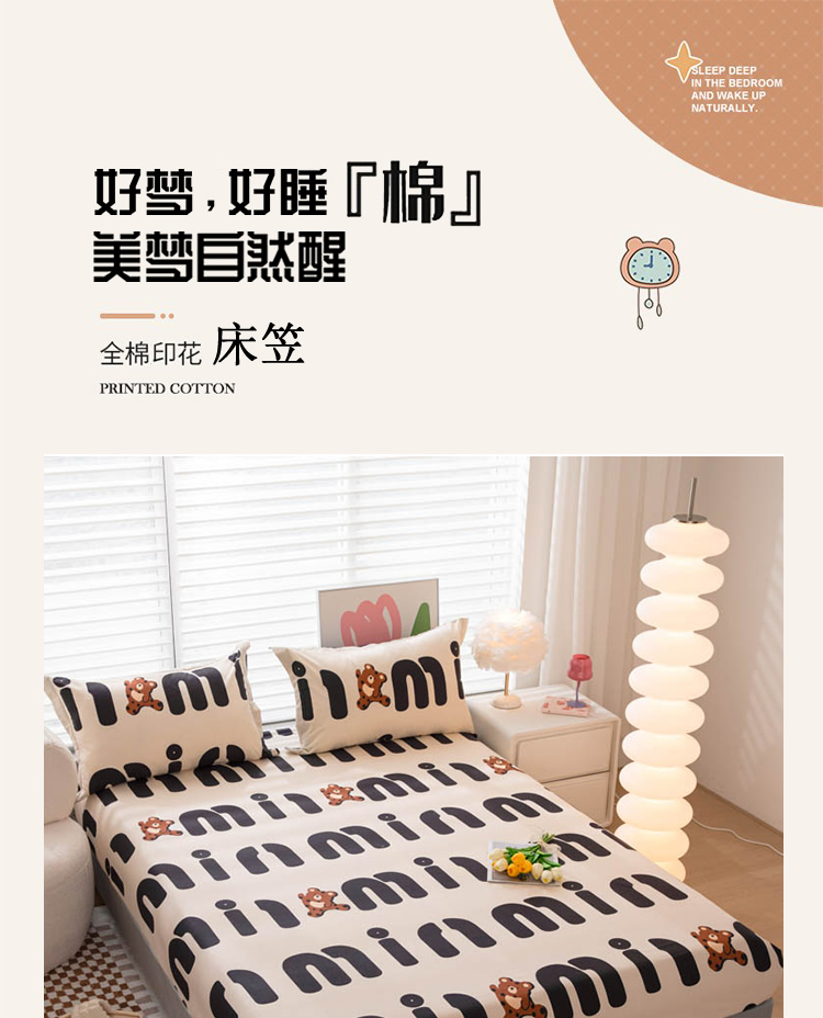 贝兰仙奴 2025春夏新款全棉纯棉12868印花单床笠 床笠单件 熊仔贝贝