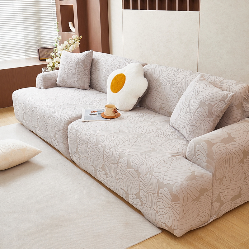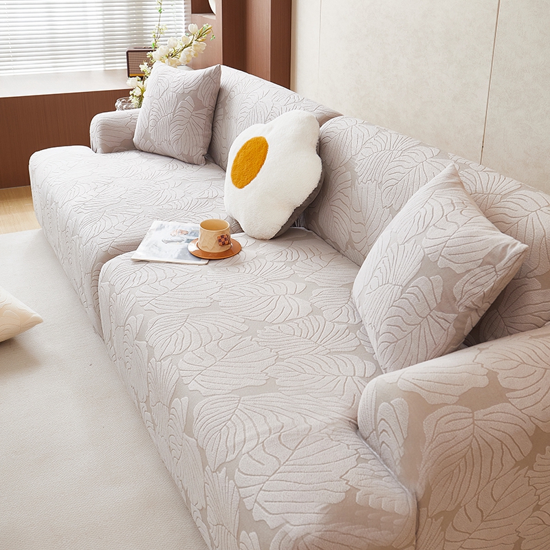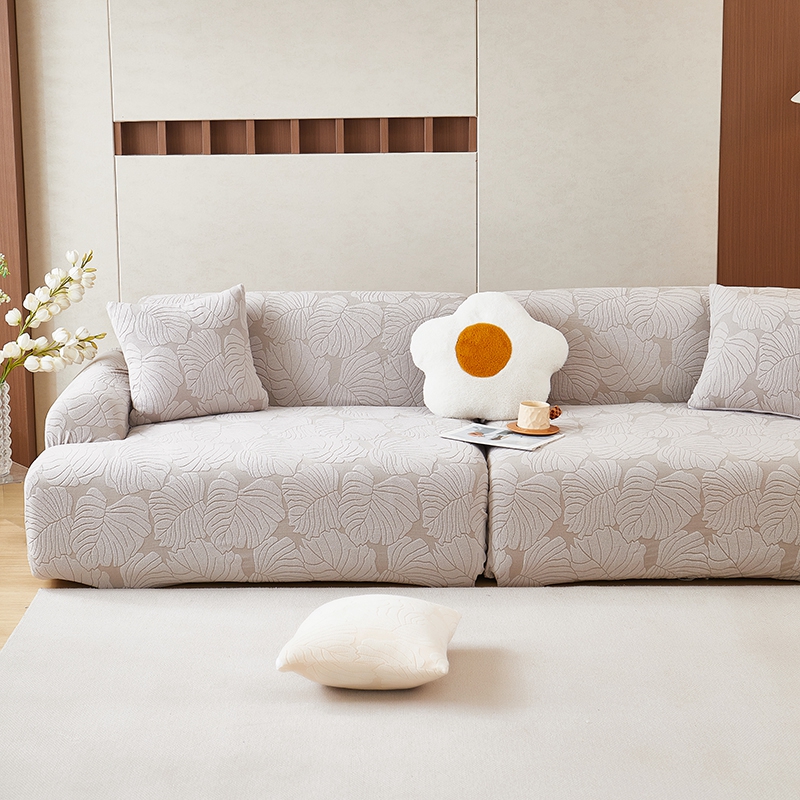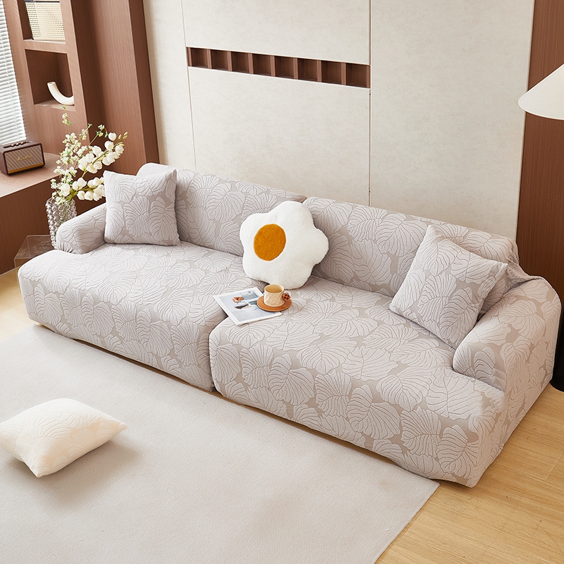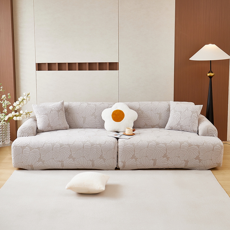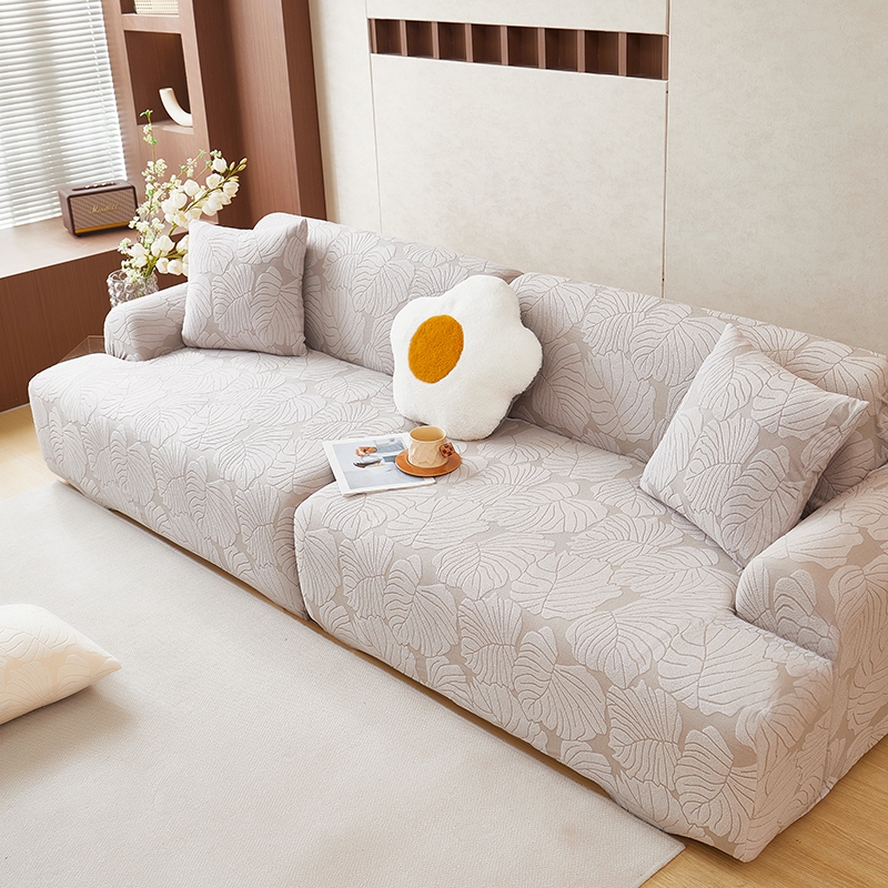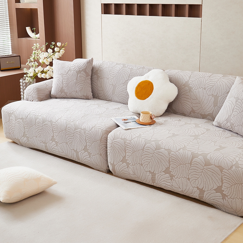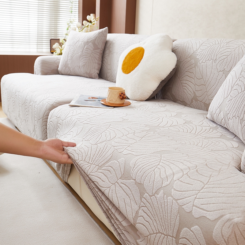 丝绮鹿 2025新款羊羔绒直排松紧款沙发套-枫叶 枫叶-银灰