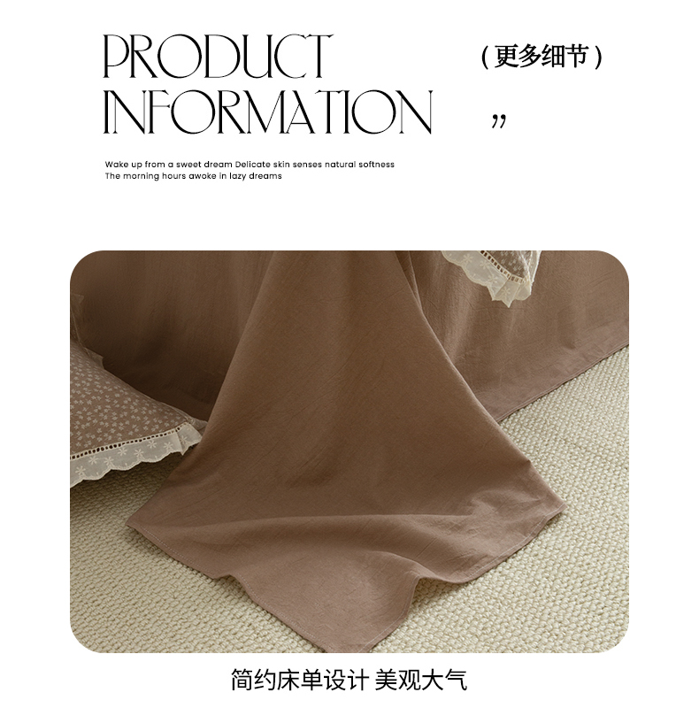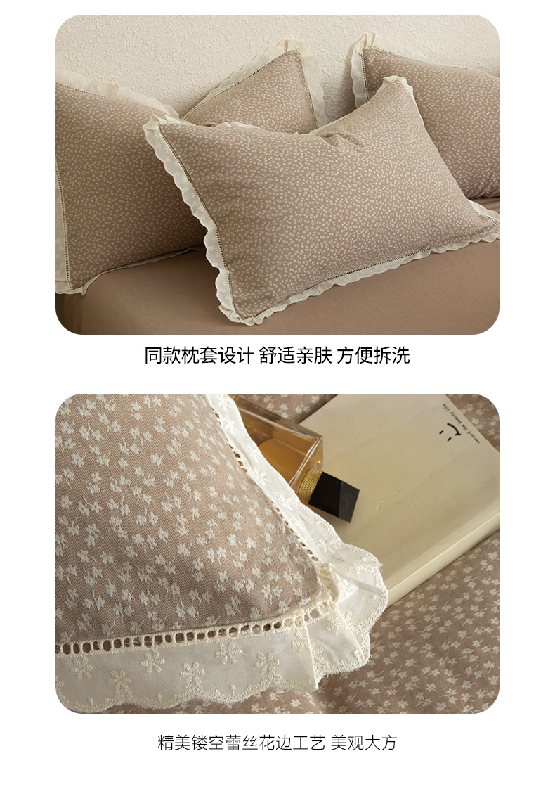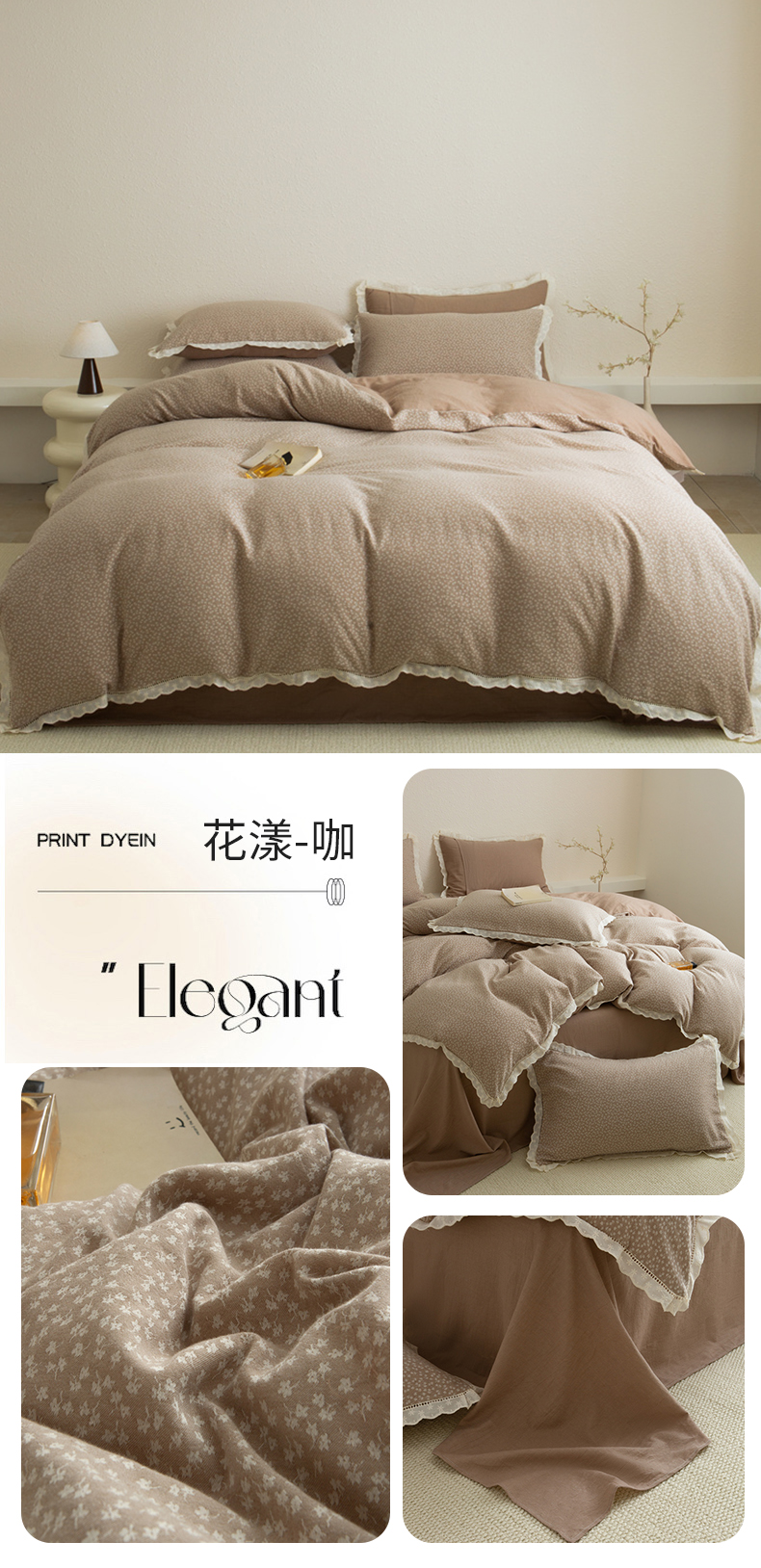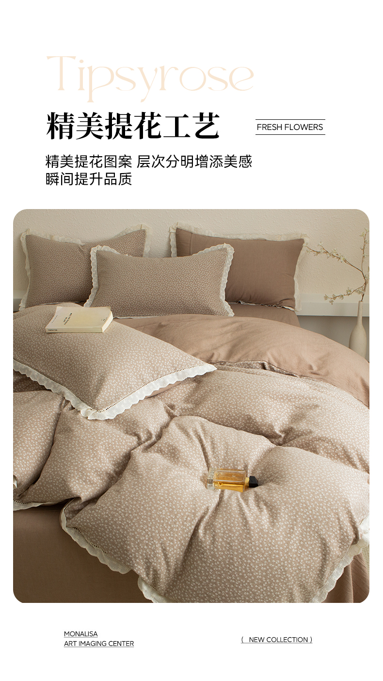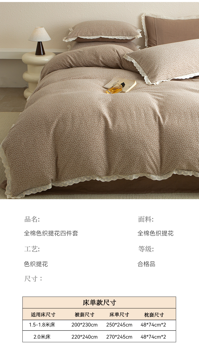 商品名称:忘忧草 2025新款全棉纯棉色织提花四件套-花漾 花漾-咖