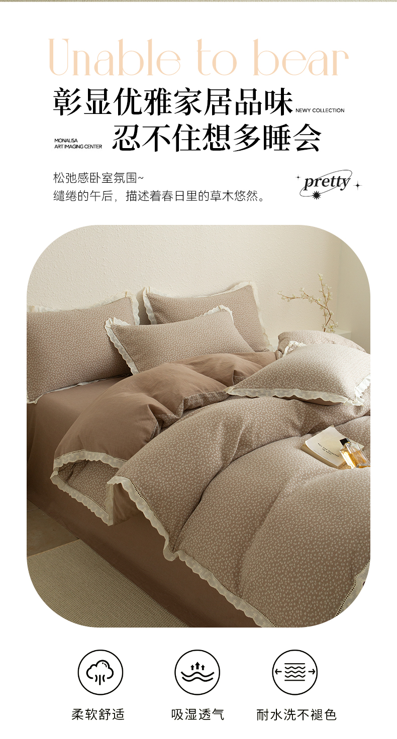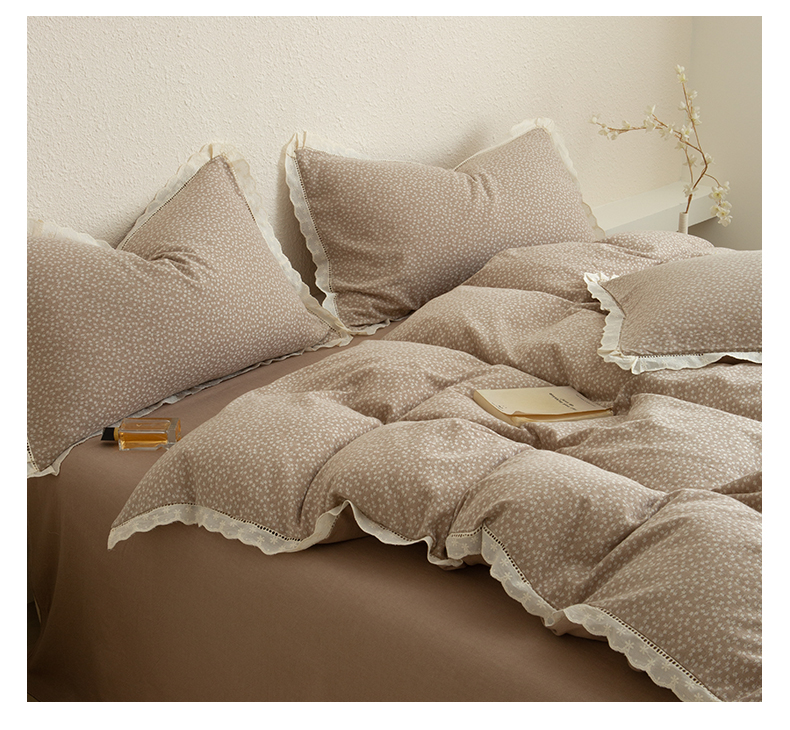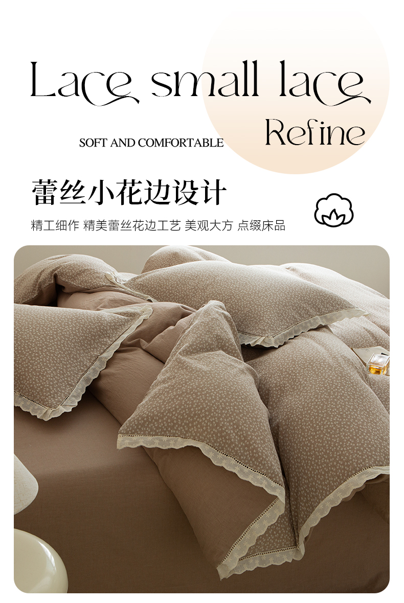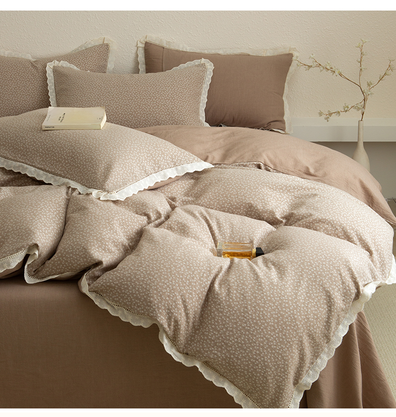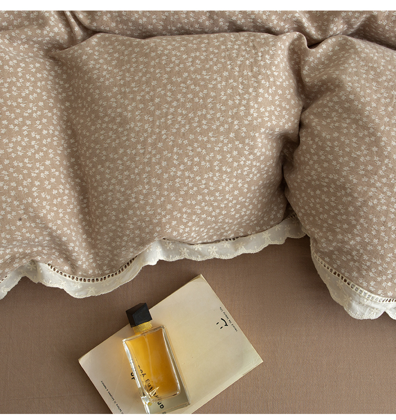 商品名称:忘忧草 2025新款全棉纯棉色织提花四件套-花漾 花漾-咖
