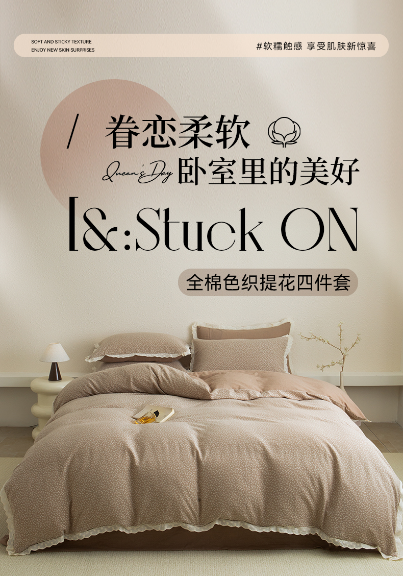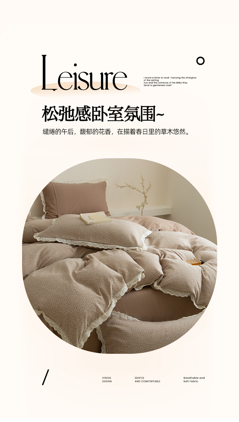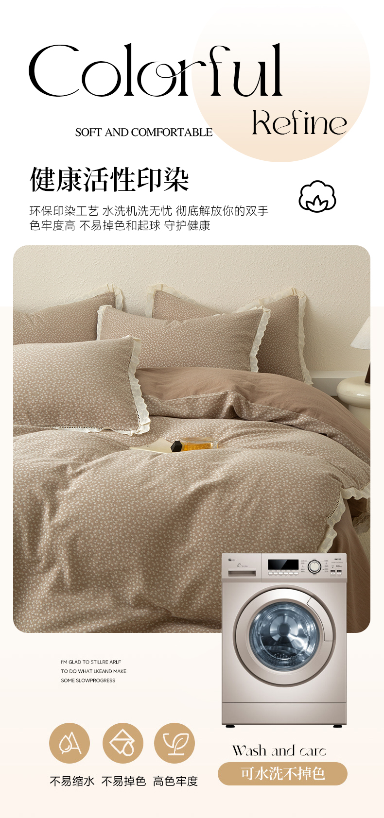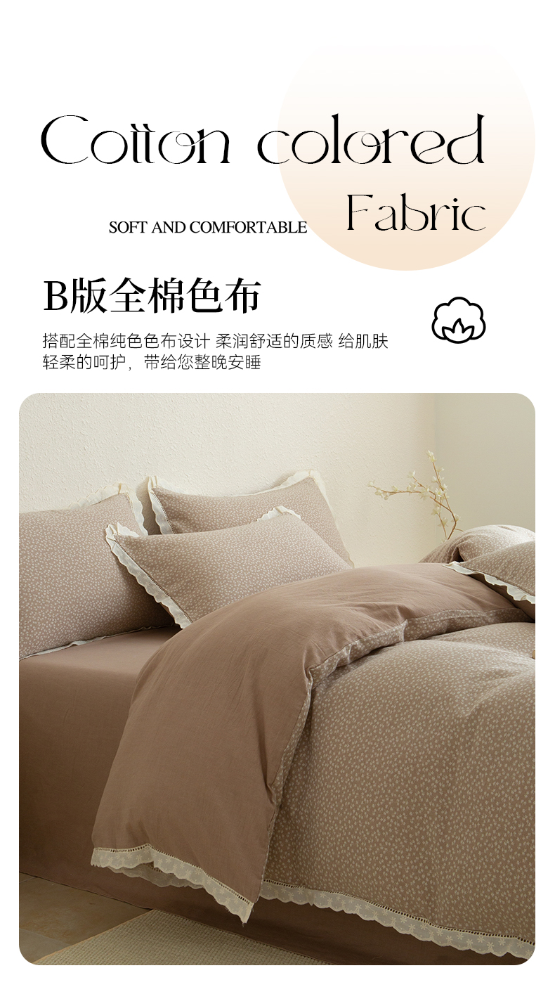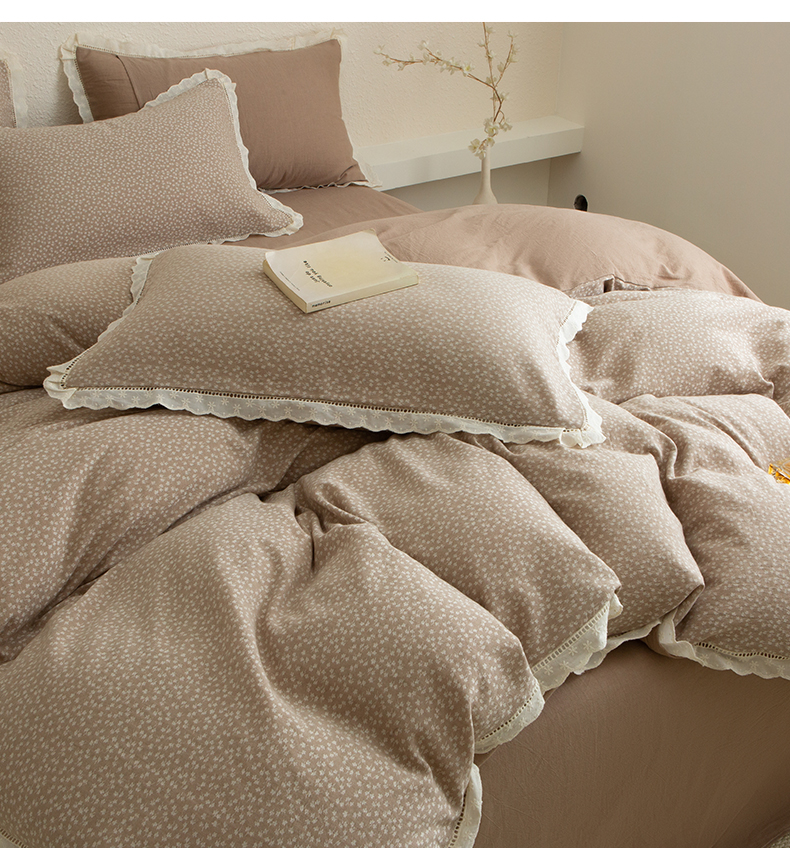 商品名称:忘忧草 2025新款全棉纯棉色织提花四件套-花漾 花漾-咖