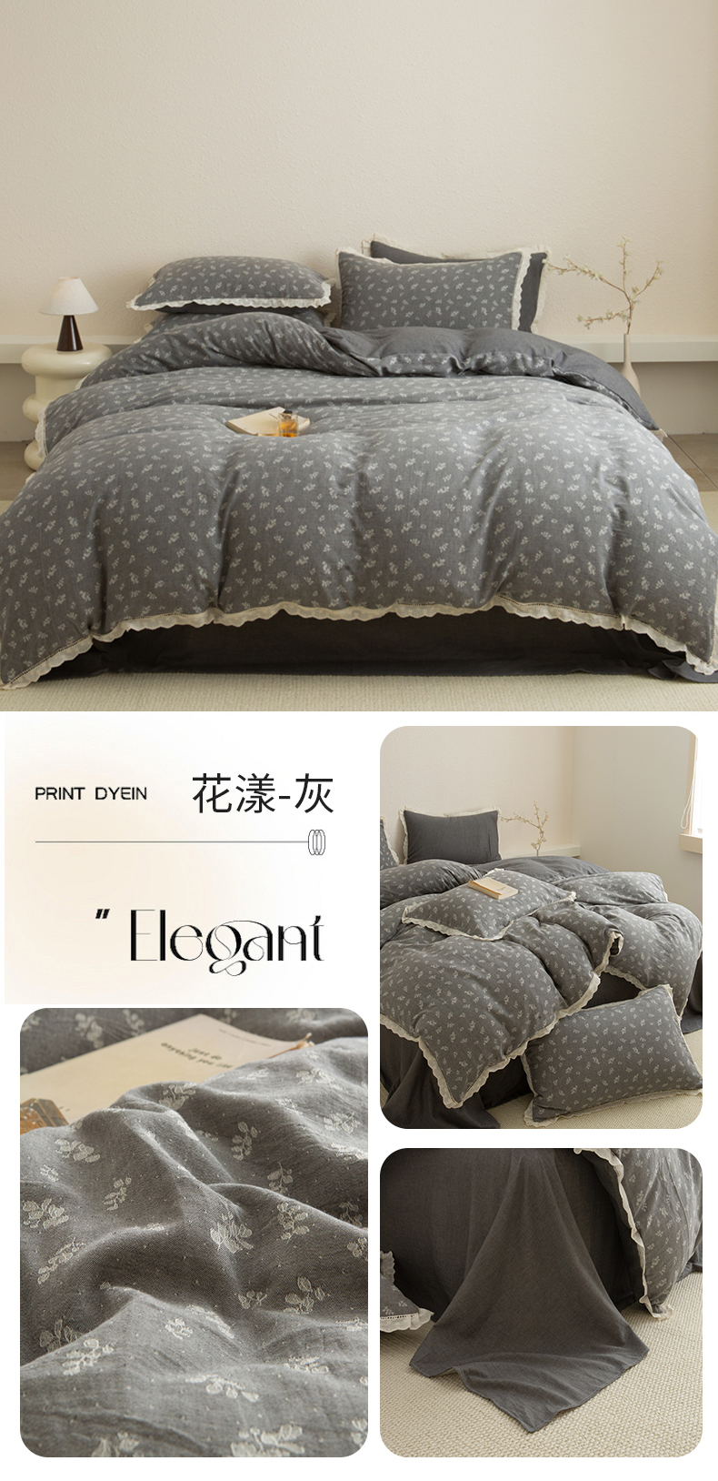(总)忘忧草 2025新款全棉纯棉色织提花四件套-花漾,花漾-粉,花漾-灰,花漾-咖,花漾-绿