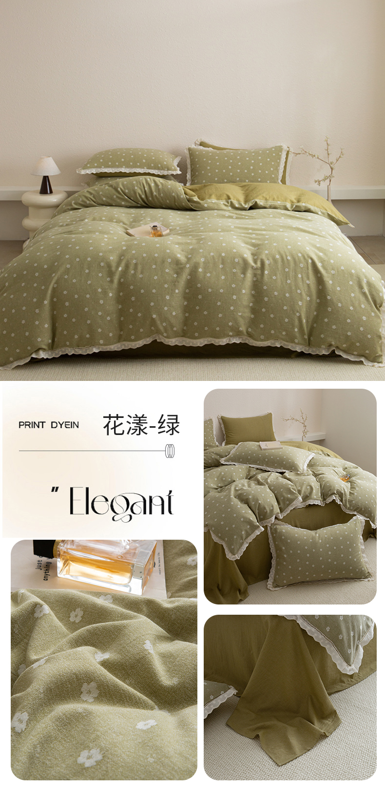 (总)忘忧草 2025新款色织水洗全棉床笠式床裙夹棉款纯棉花边床笠-花颜系列,花颜-白,花颜-粉,花颜-灰,花颜-咖,花颜-蓝,花颜-绿