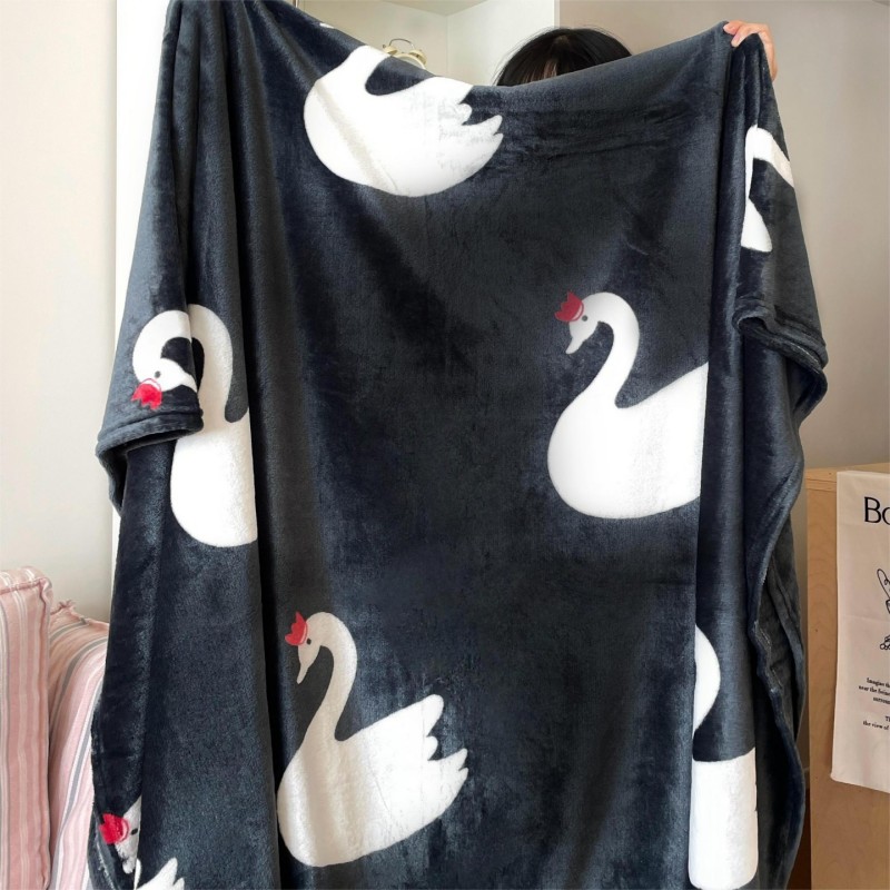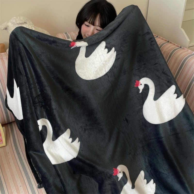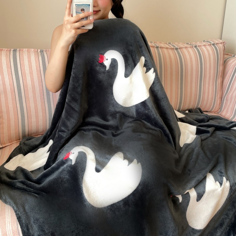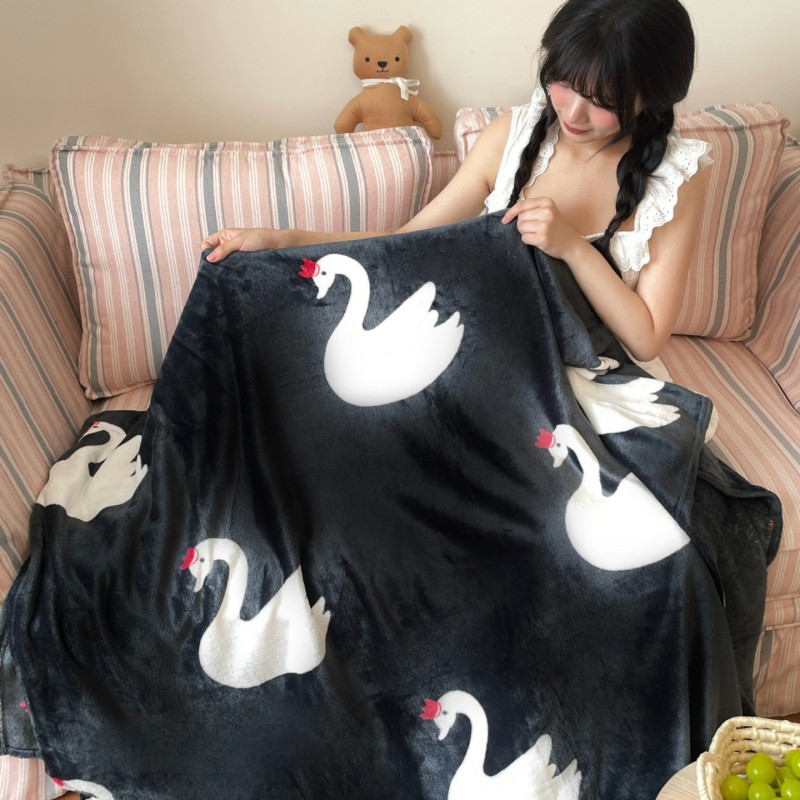 商品名称:顾里家纺 2025新款ins少女奶油治愈双面牛奶绒毯 黑天鹅