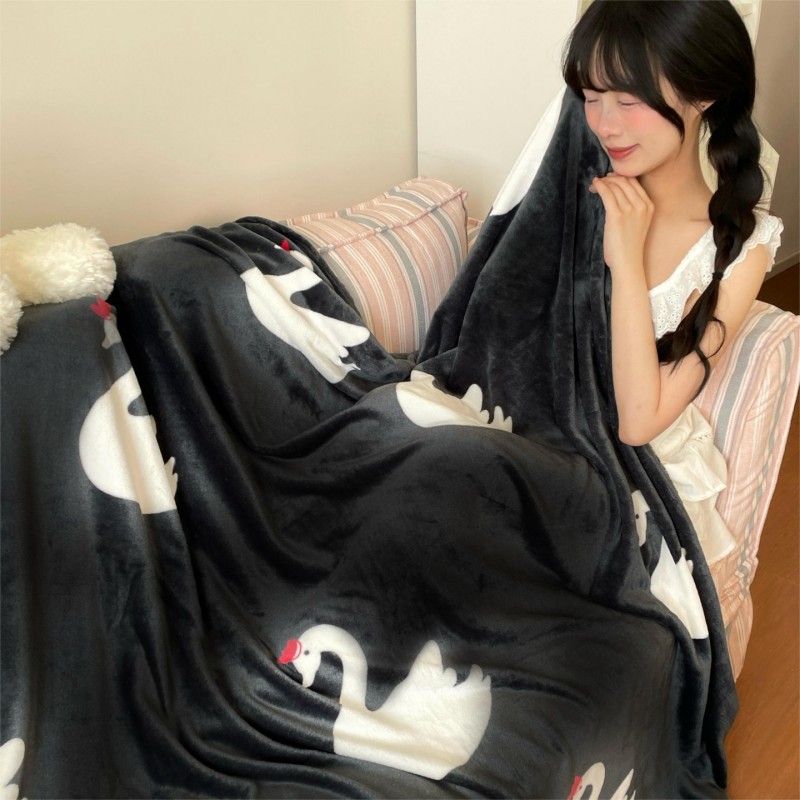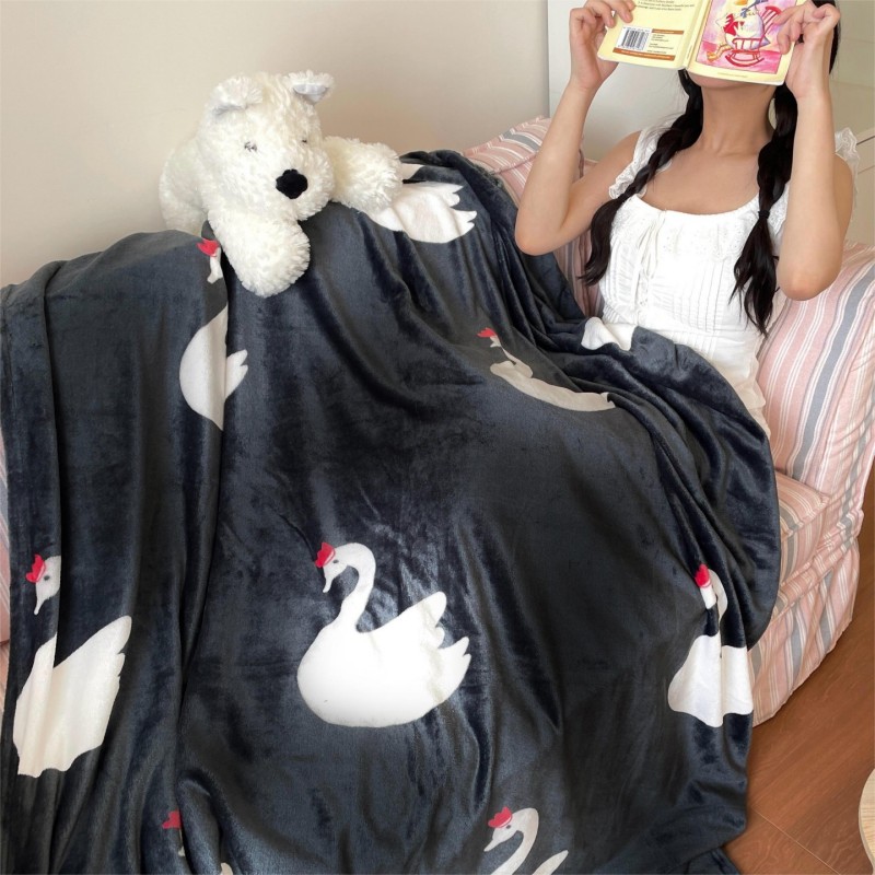 顾里家纺 2025新款ins少女奶油治愈双面牛奶绒毯 黑天鹅