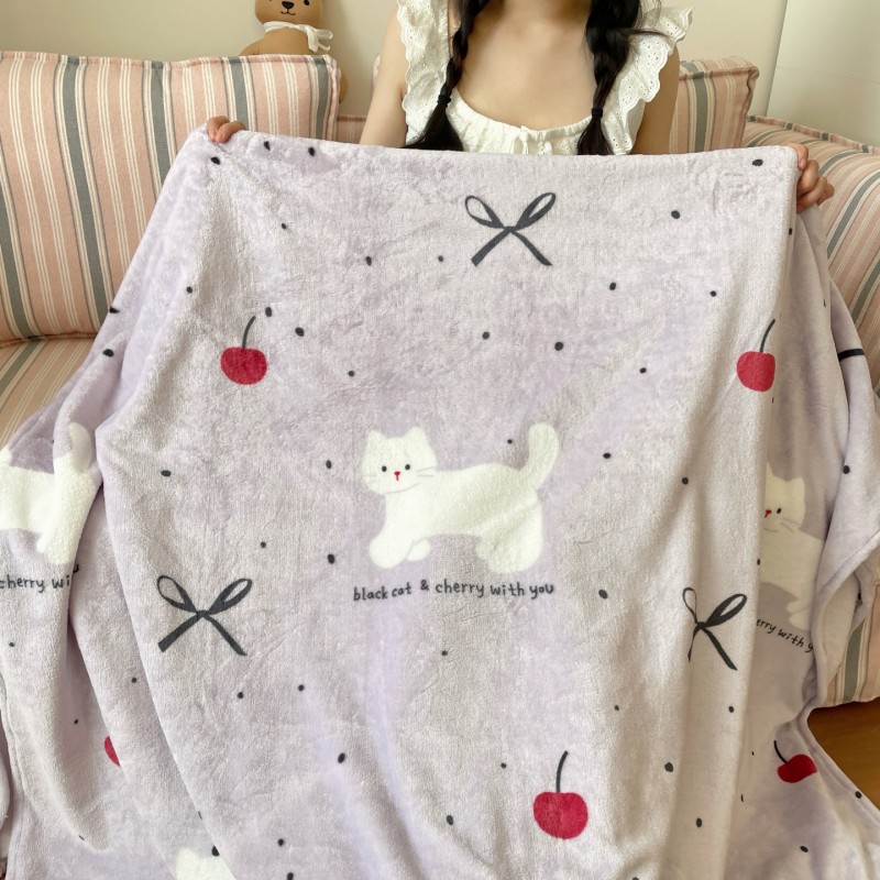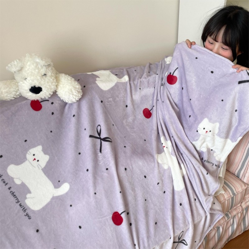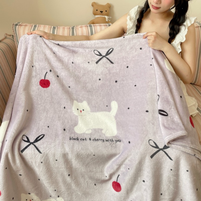 商品名称:顾里家纺 2025新款ins少女奶油治愈双面牛奶绒毯 小紫猫