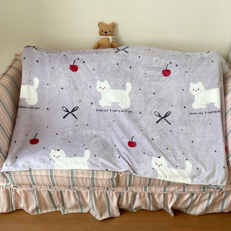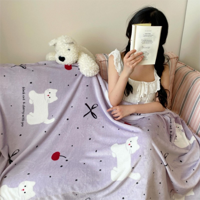 顾里家纺 2025新款ins少女奶油治愈双面牛奶绒毯 小紫猫