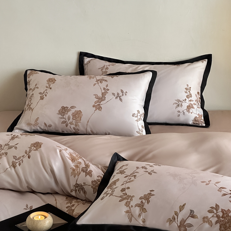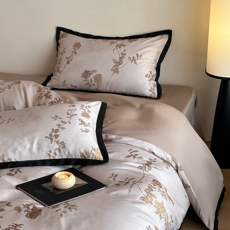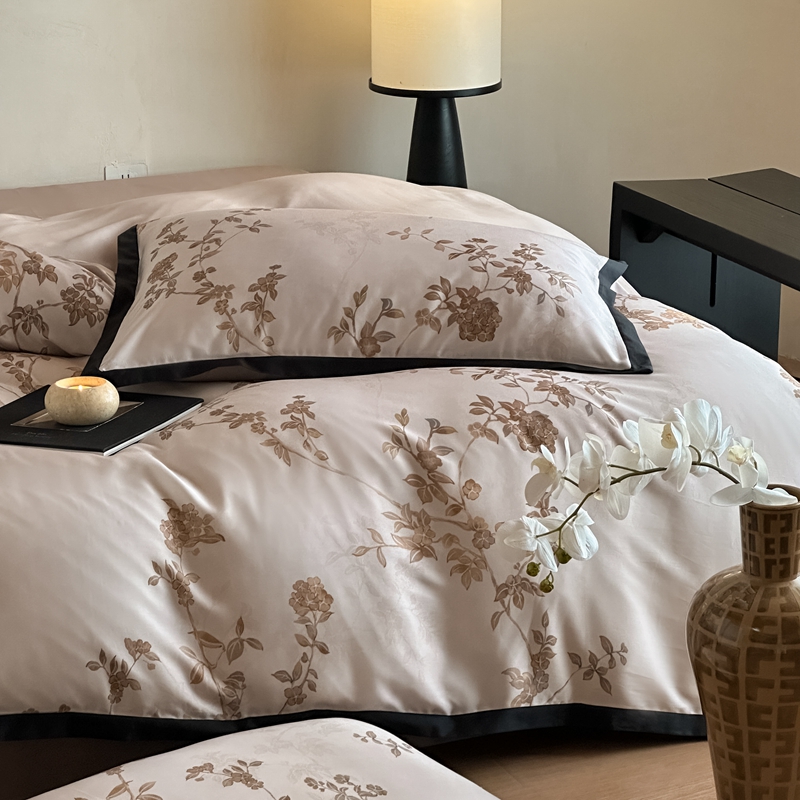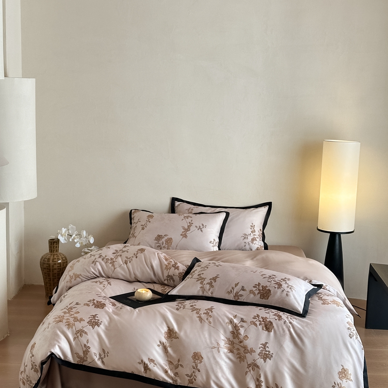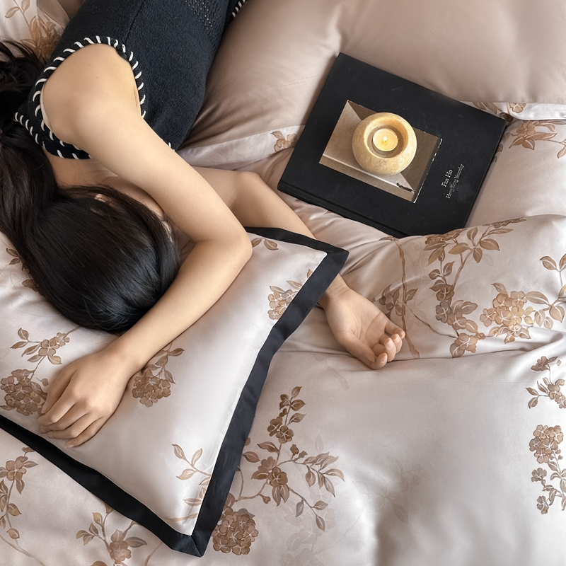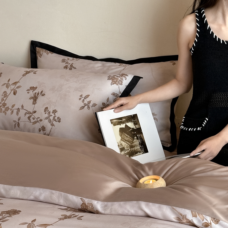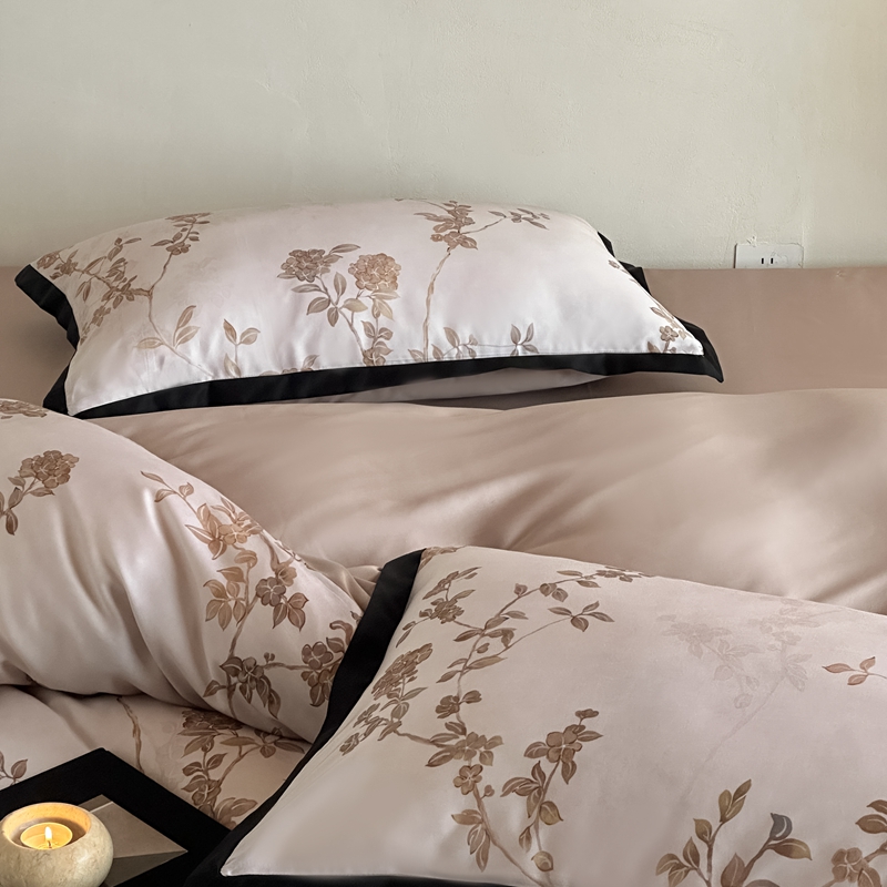 佳汐蓝家纺 2025 春夏新品60支兰精天丝数码印花四件套-浮生 豆沙