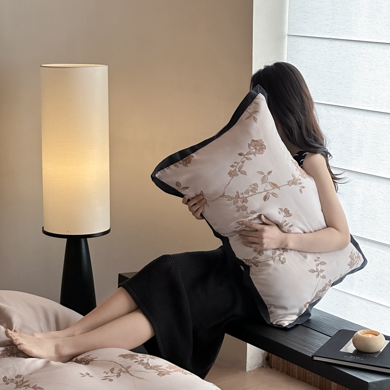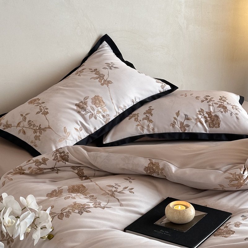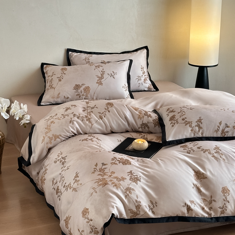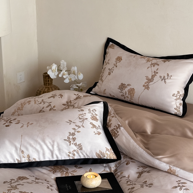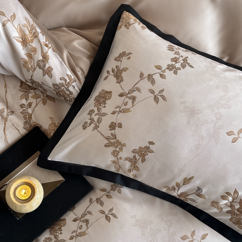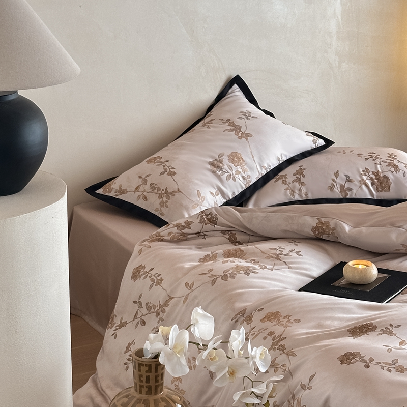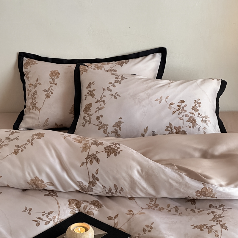 佳汐蓝家纺 2025 春夏新品60支兰精天丝数码印花四件套-浮生 豆沙