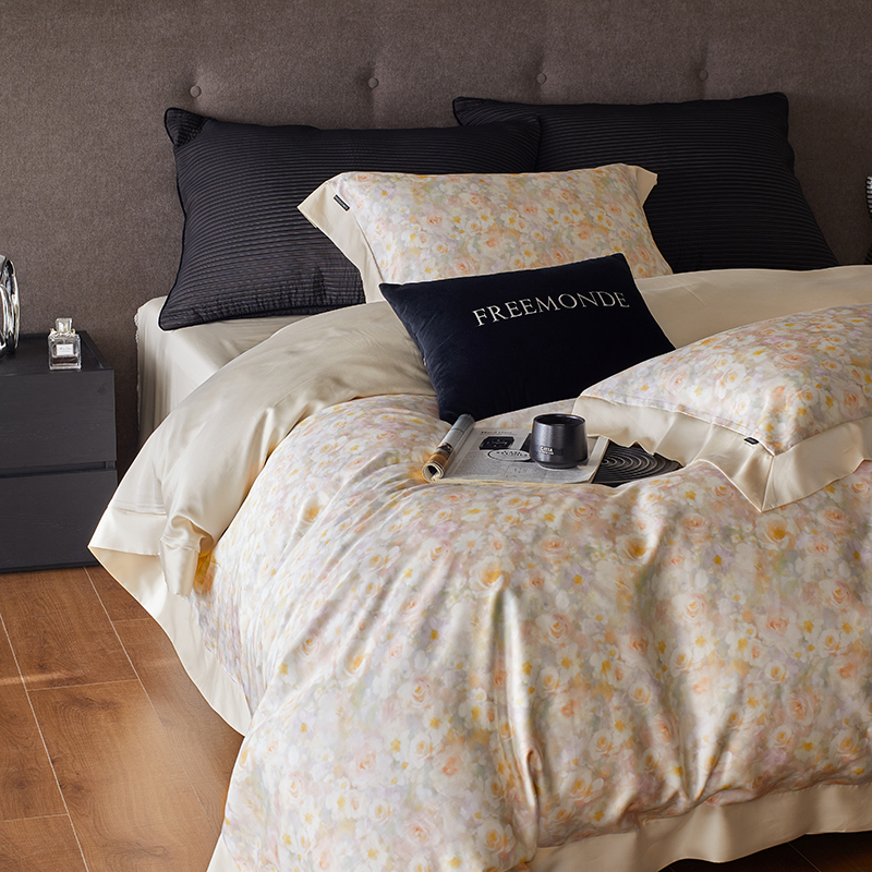 商品名称:蕾诺家纺 2025新款60支进口奥地利兰精天丝数码印花四件套 茉莉清晨