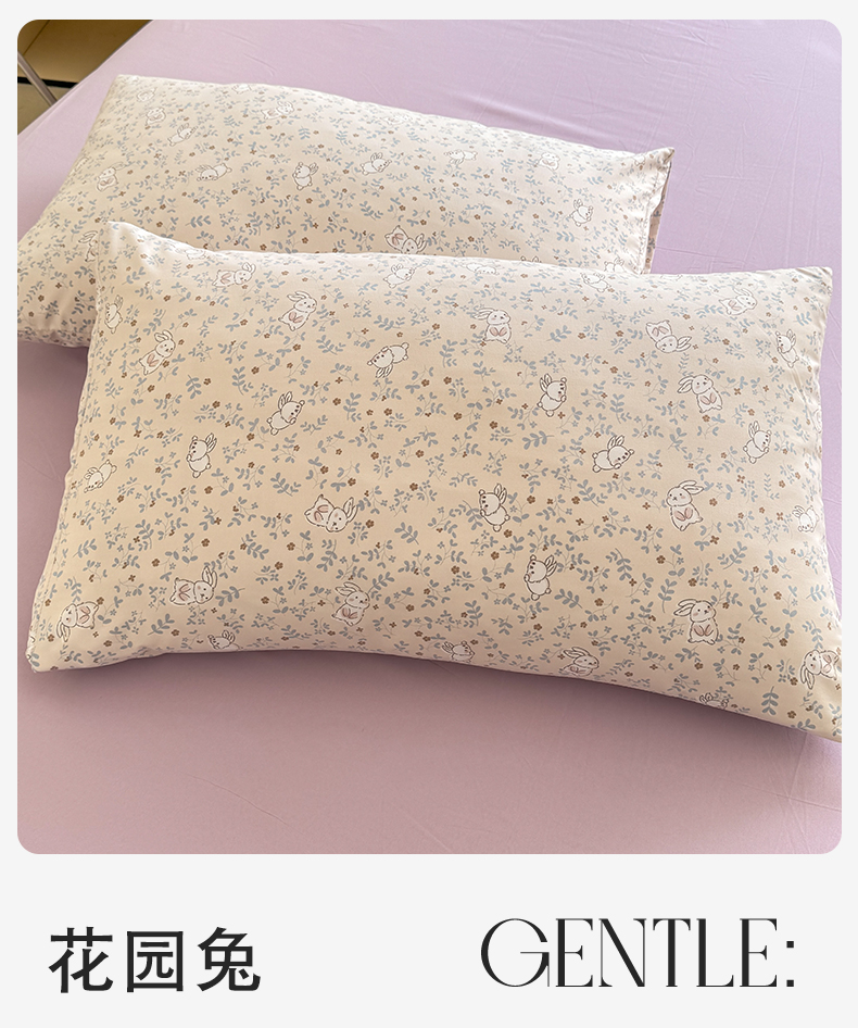 多品家纺 2025新款花卉水洗棉单枕套枕套单件 花园兔
